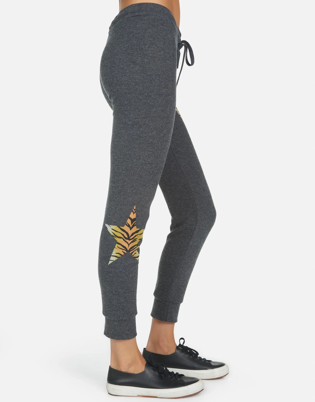 Tiger Tongue Printed on Ultra Soft Lightweight Sweatpant in Heather Black by Lauren Moshi.