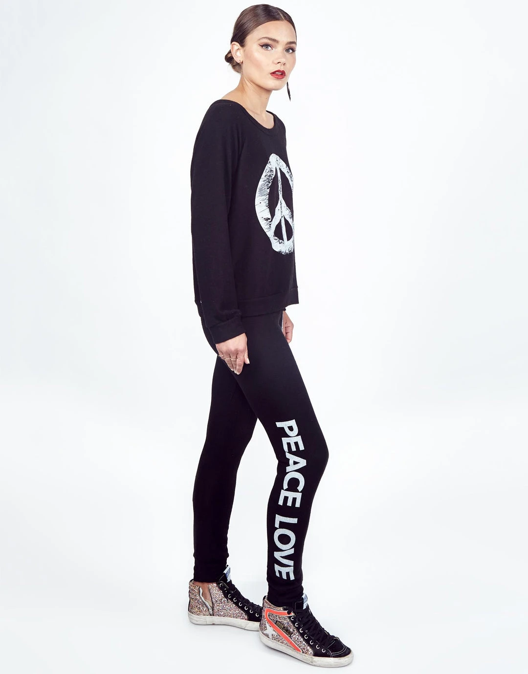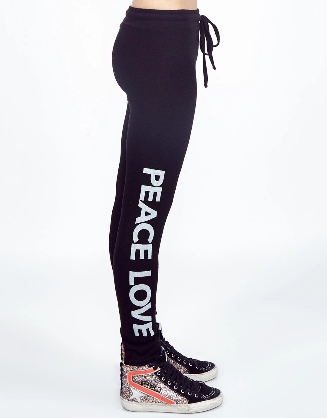 Vintage Peace Love Printed on Ultra Soft Classic Sweatpant in Jet Black by Lauren Moshi.
