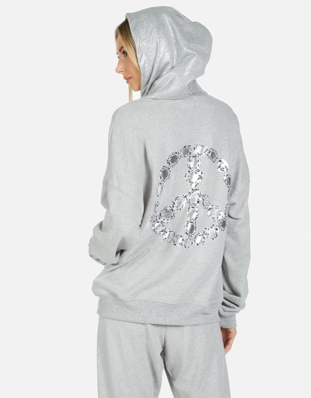 Metallic Diamond Peace Sign Printed on Ultra Soft Lightweight Hoodie in Black by Lauren Moshi.