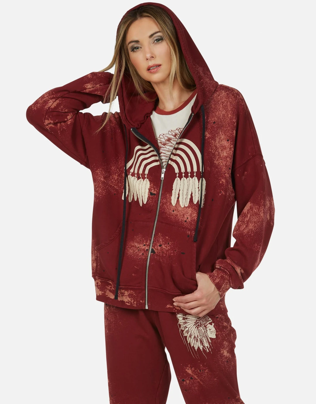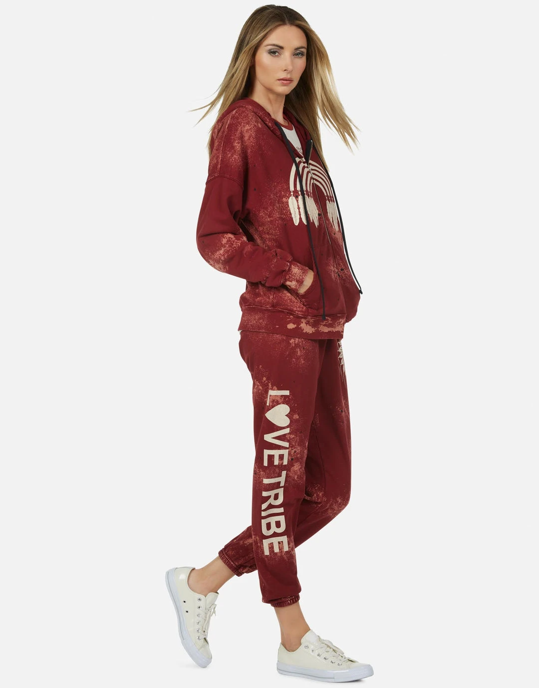 Love Tribe Skull Printed on Ultra Soft Lightweight Hoodie in Vintage Spice by Lauren Moshi.