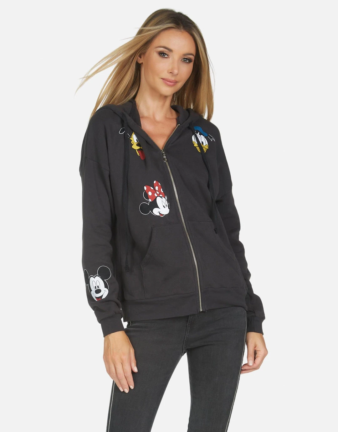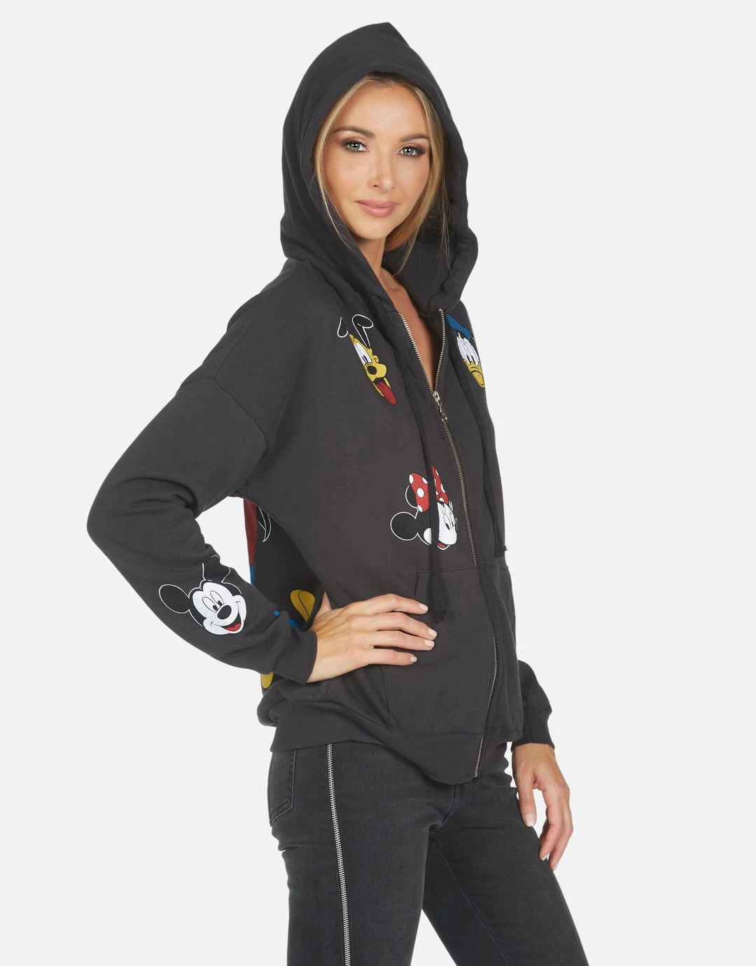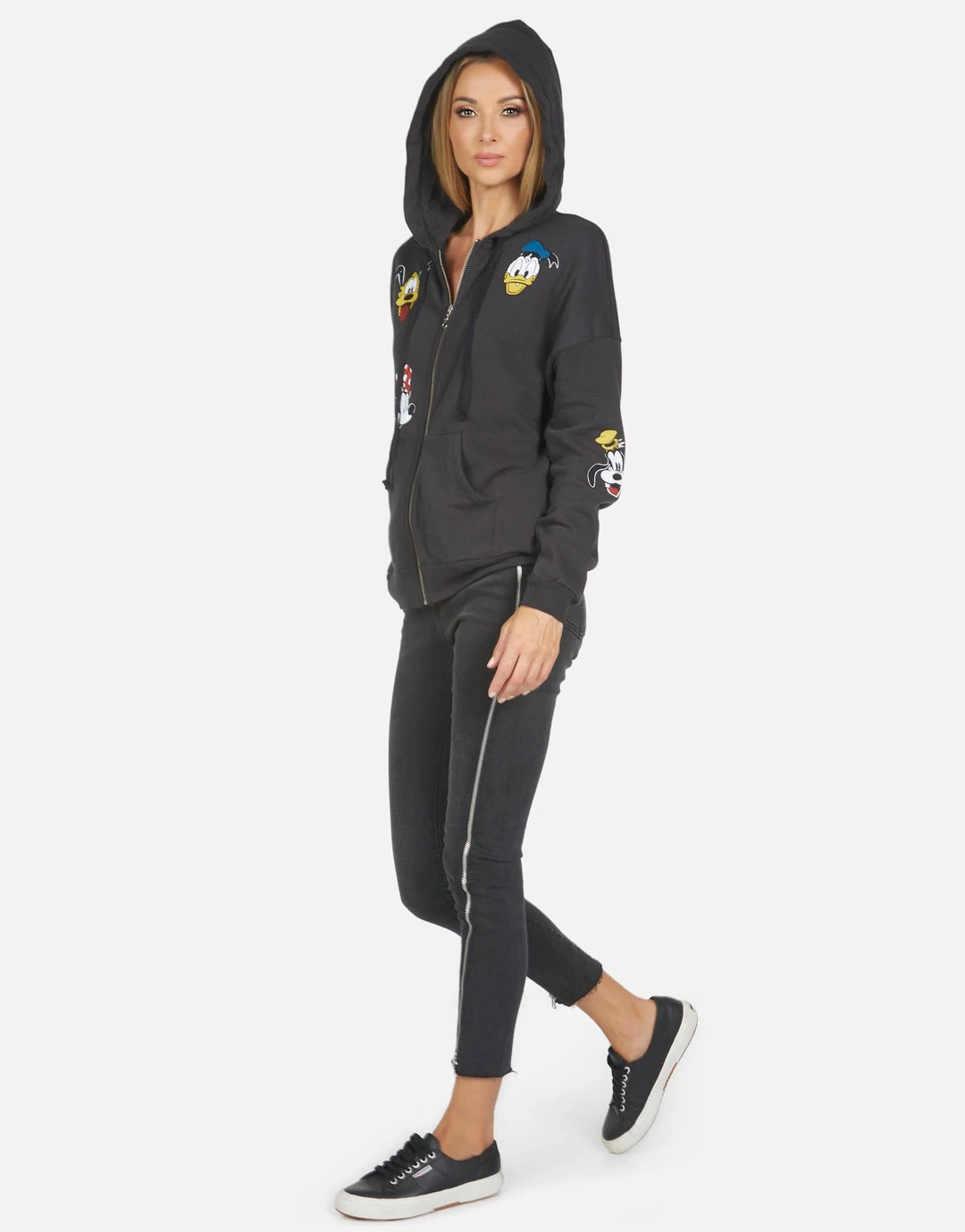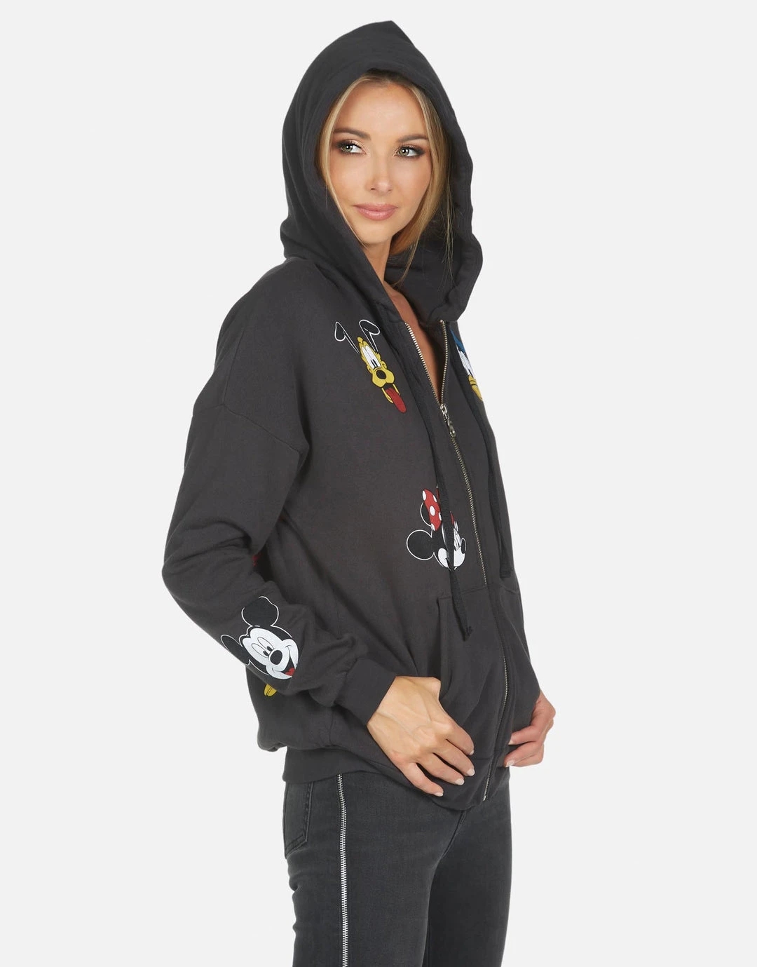 Mickey Crew Printed on Ultra Soft Lightweight Hoodie in Onyx by Lauren Moshi.
