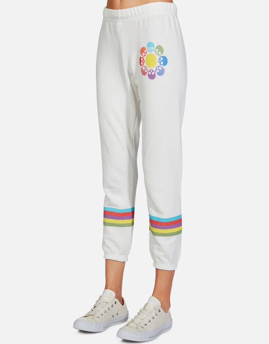 Skull Flower Printed on Ultra Soft Lightweight Sweatpant in Milk by Lauren Moshi.