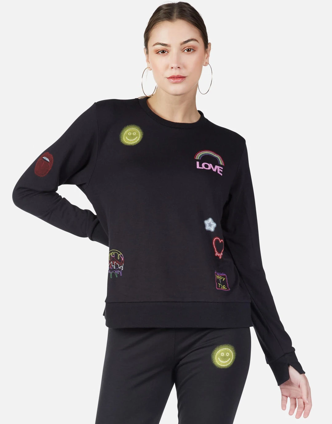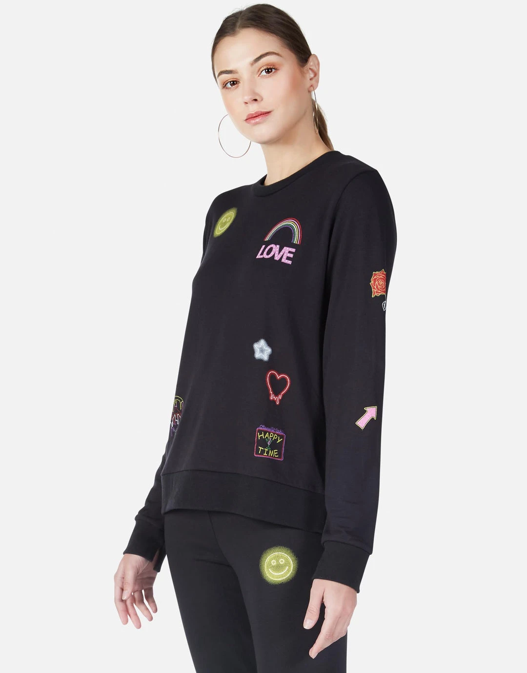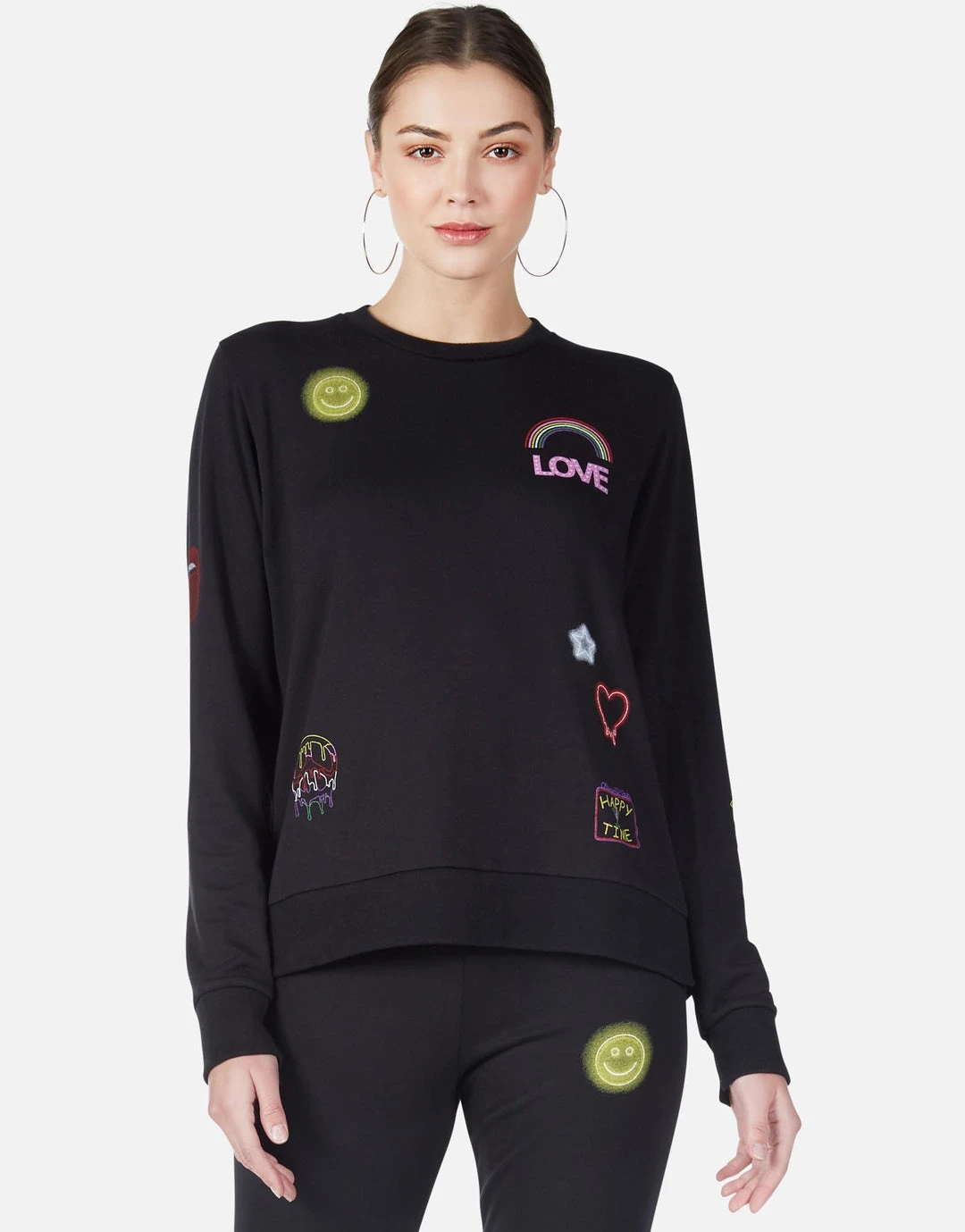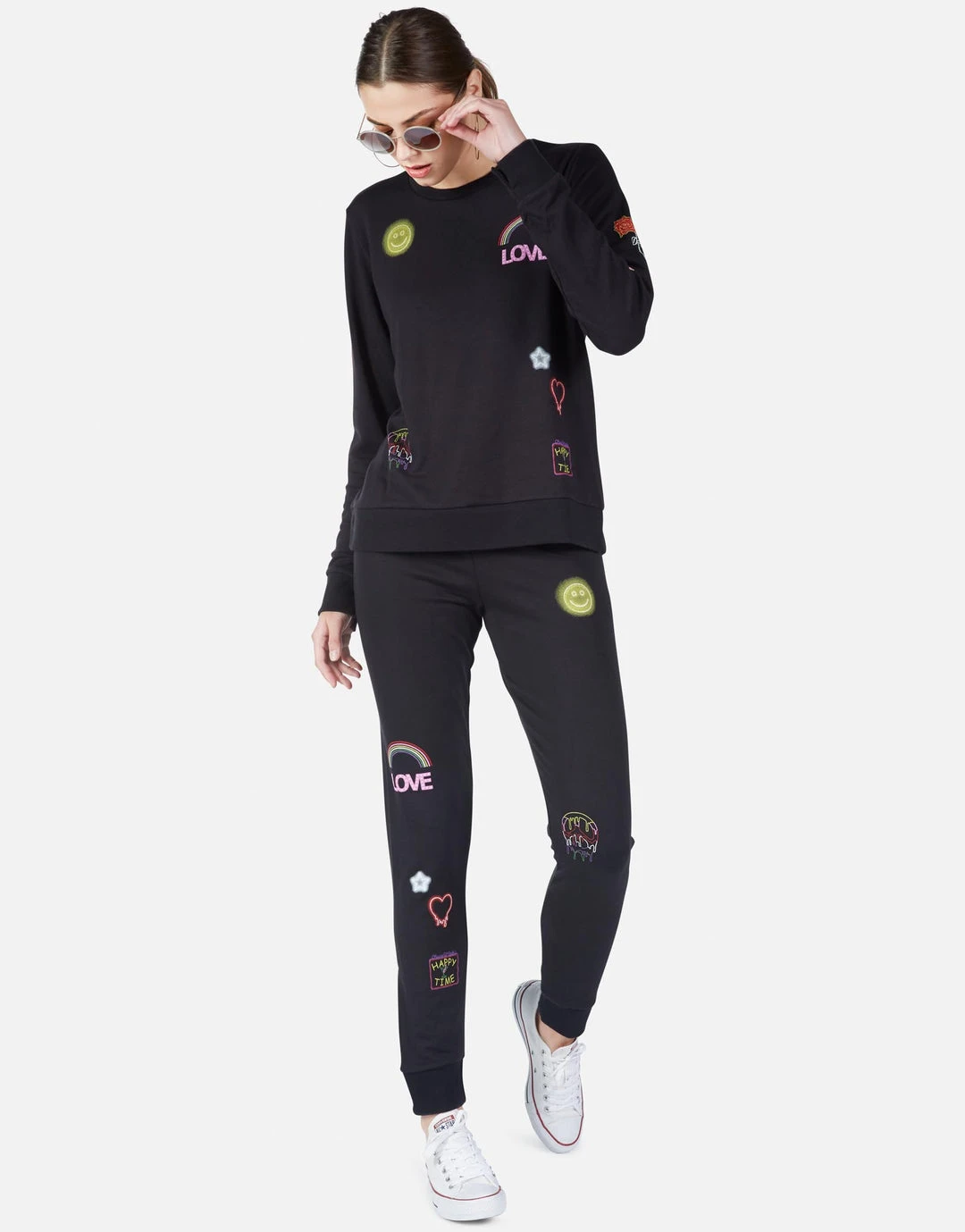 Neon Signs Printed on Super Soft Lightweight Pullover in Black by Lauren Moshi.