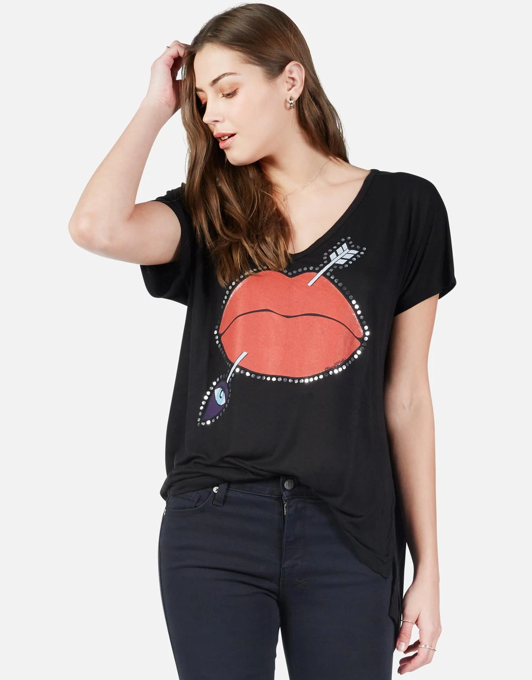 Arrow Lip Printed on Ultra Soft Lightweight Tee in Black by Lauren Moshi.