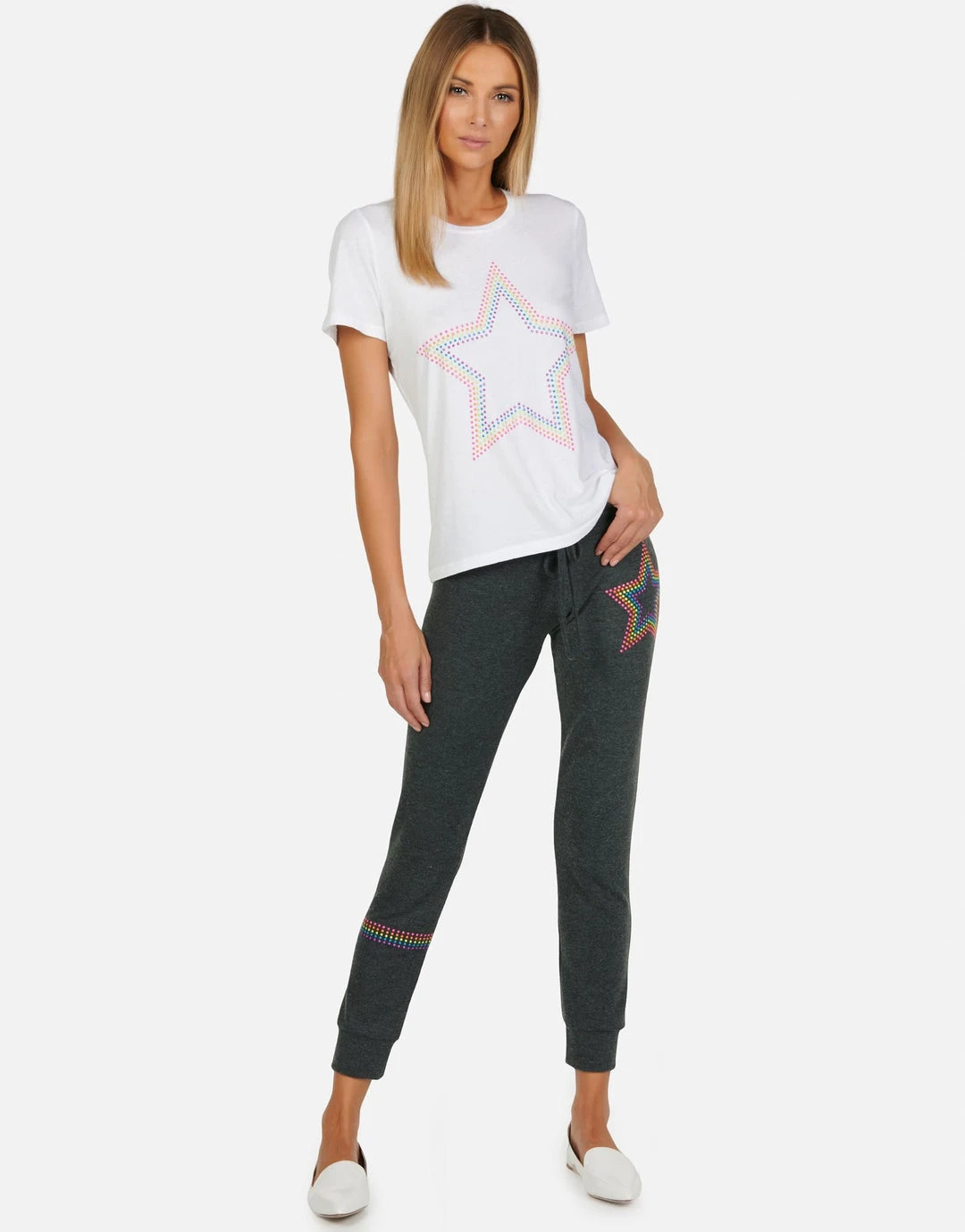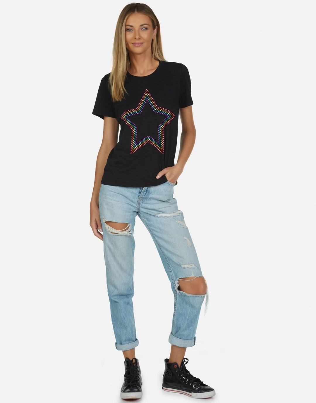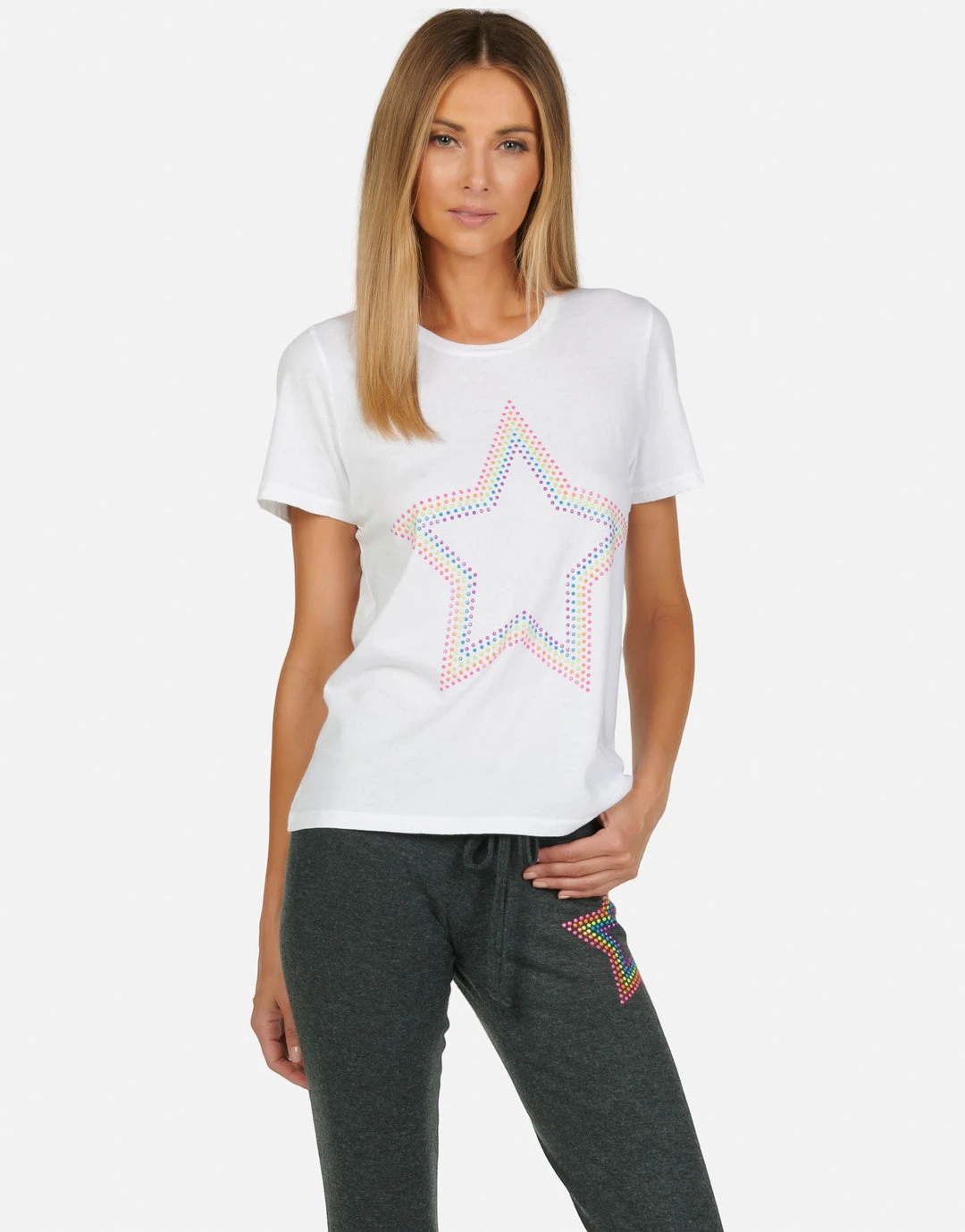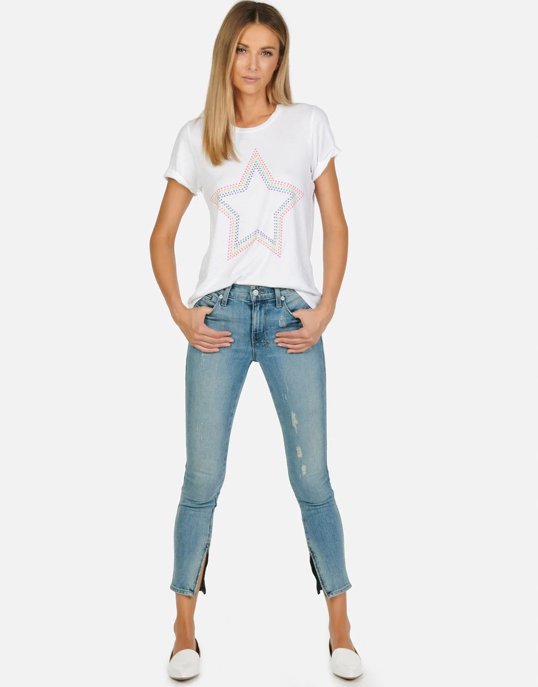 Neon Stud Star on Ultra Soft Lightweight Tee in White & Black by Lauren Moshi.