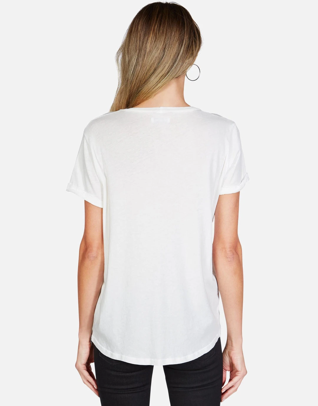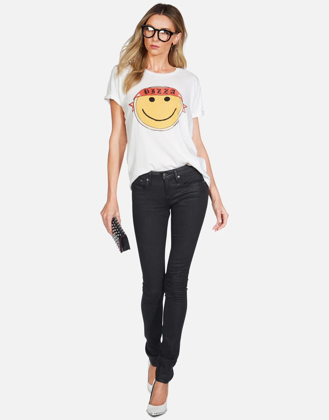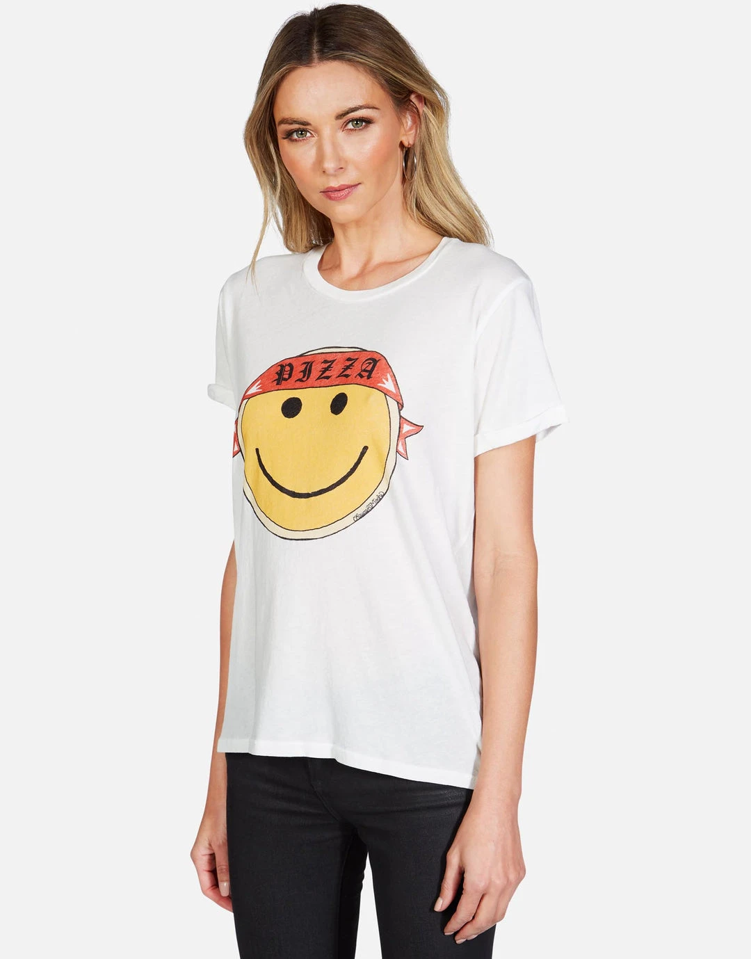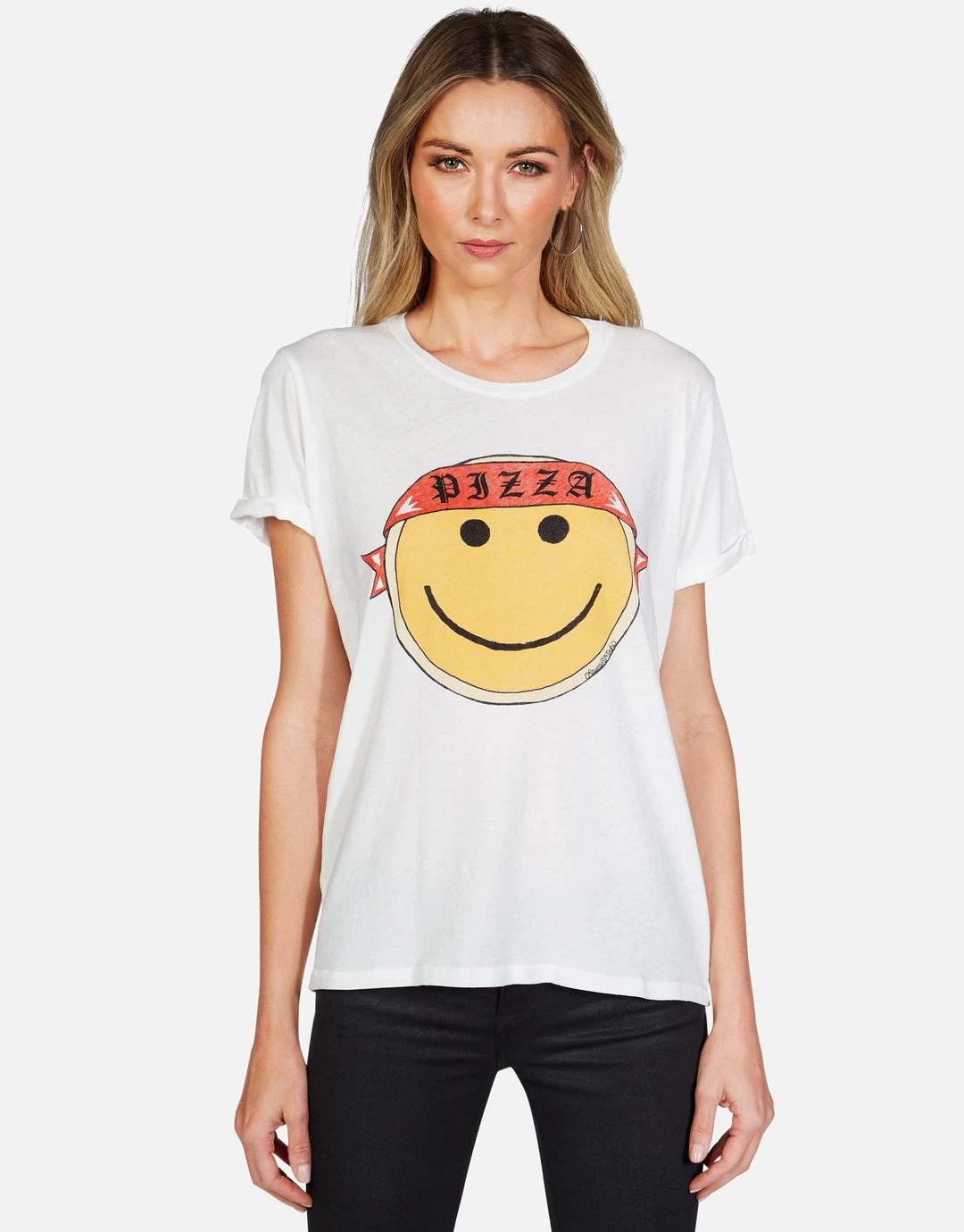 Happy Pizza Printed on Ultra Soft Lightweight Vintage Tee in Milk by Lauren Moshi.