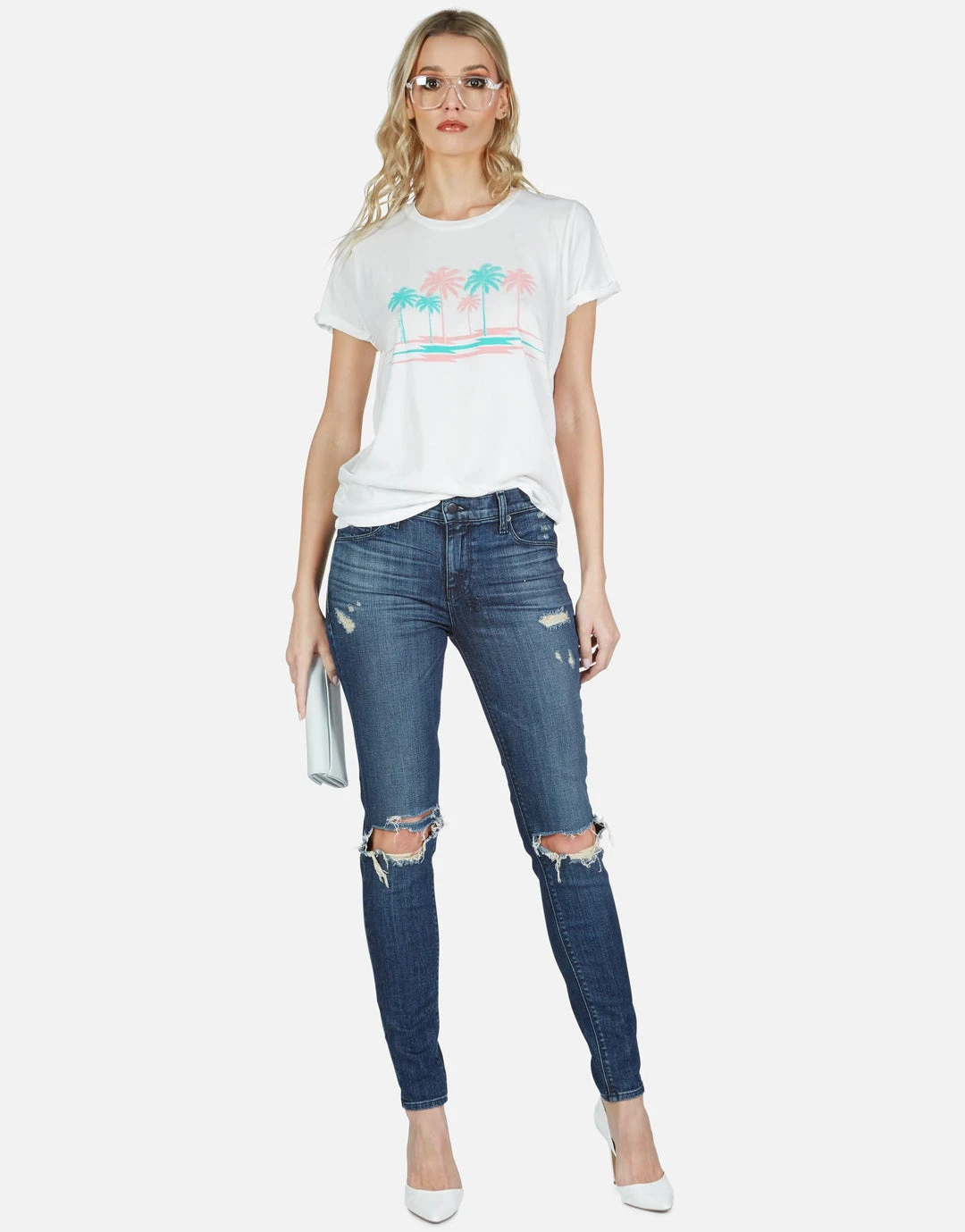 Lightning Palm Trees Printed on Ultra Soft Lightweight Vintage Tee in Milk by Lauren Moshi.