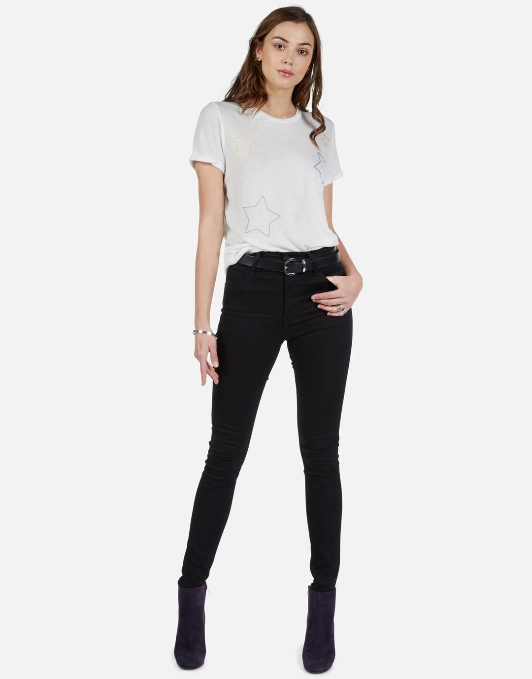 Outlined Color Stars Embroidered on Ultra Soft Lightweight Vintage Tee in Milk by Lauren Moshi.