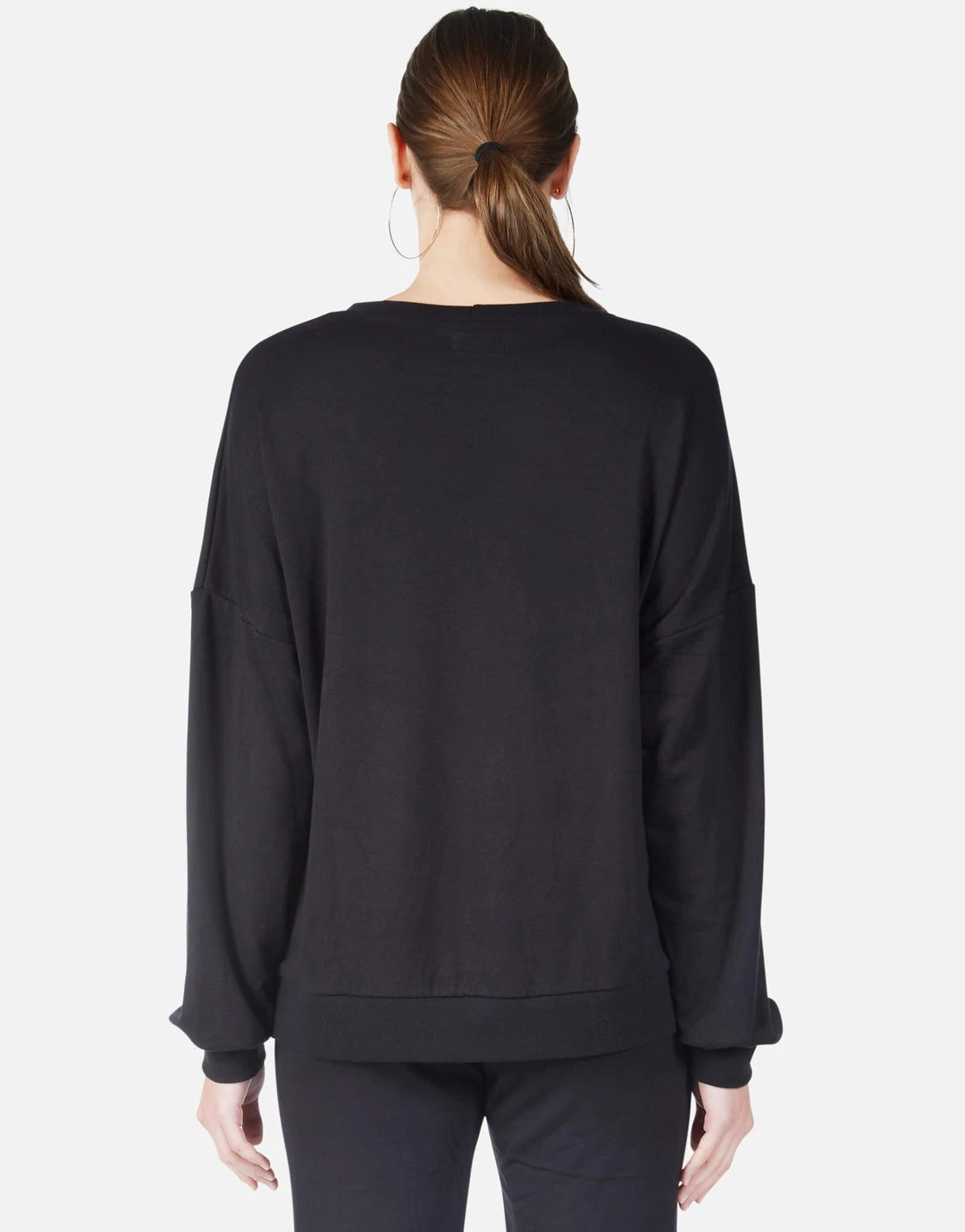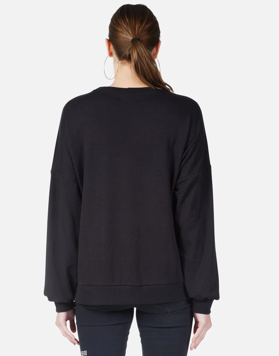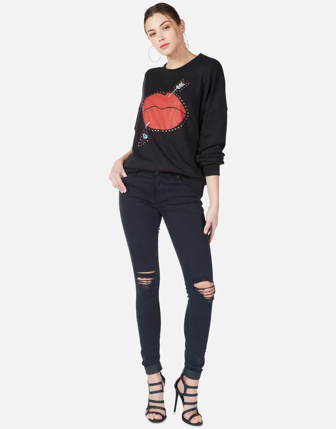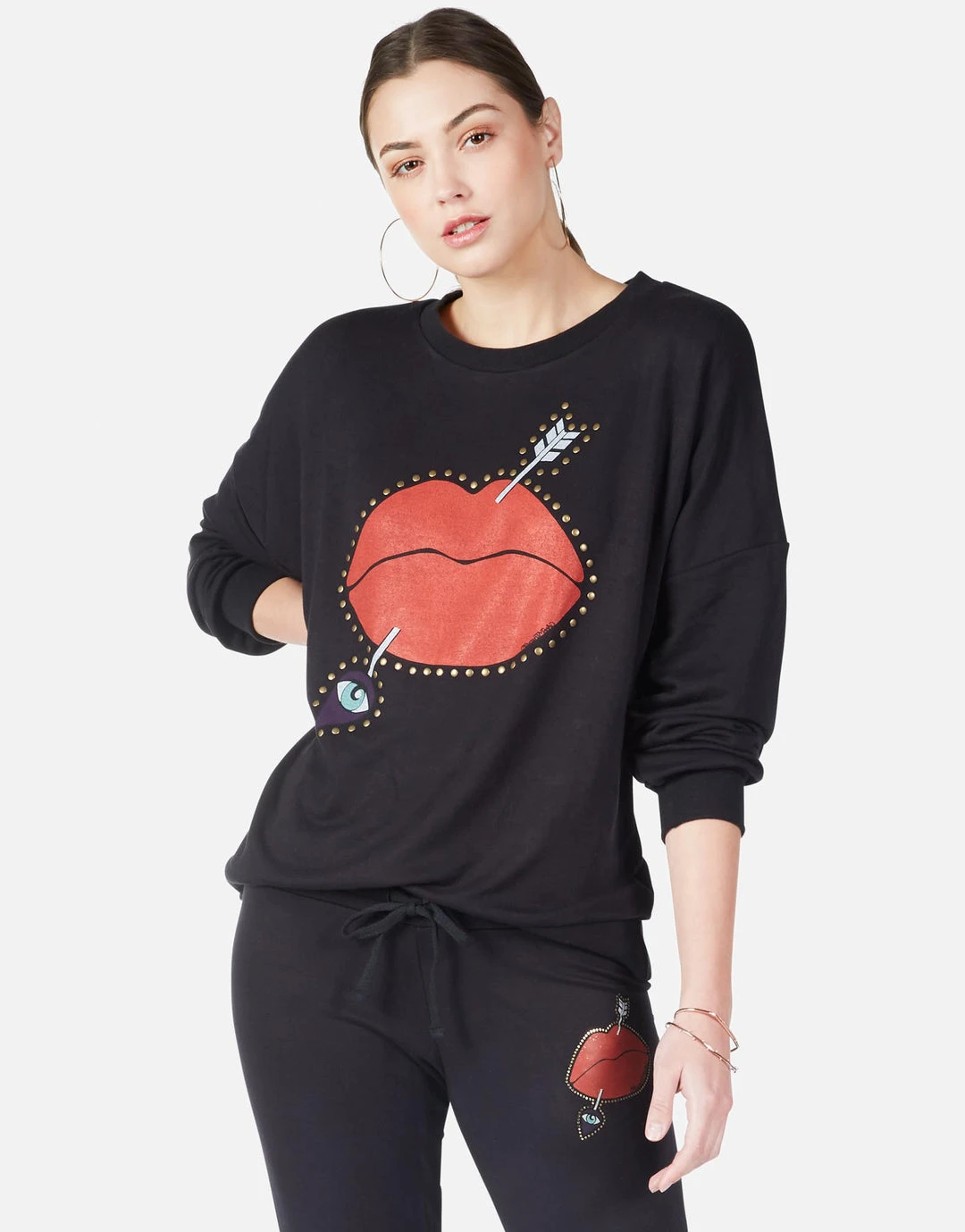 Arrow Lip Printed on Ultra Soft Lightweight Pullover in Black by Lauren Moshi.