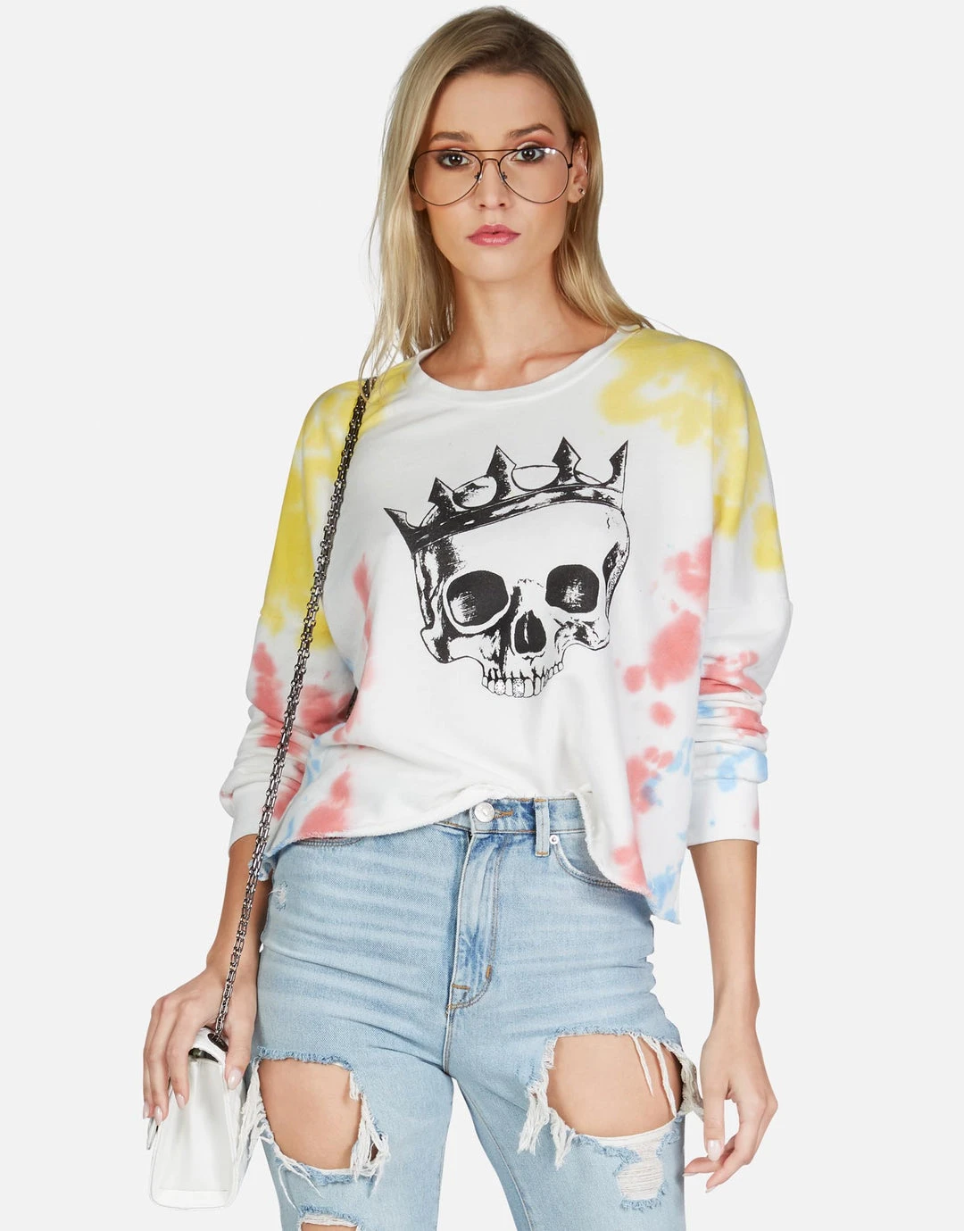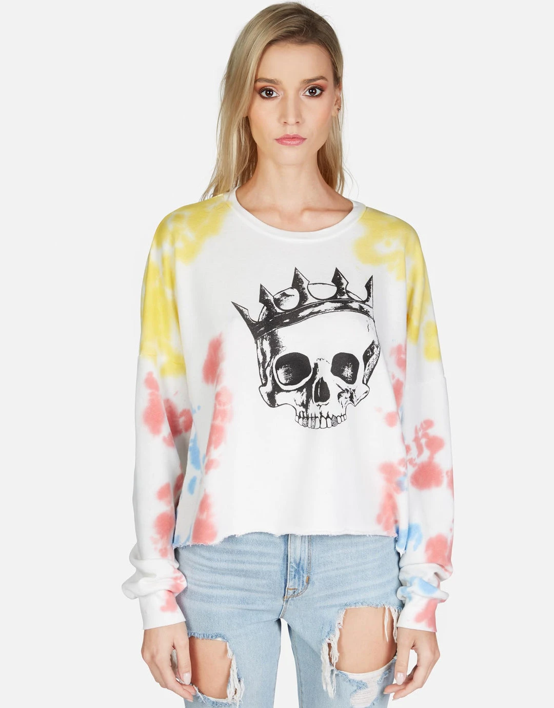 Royal Skull Printed on Ultra Soft Lightweight Pullover in Primary Clouds by Lauren Moshi.