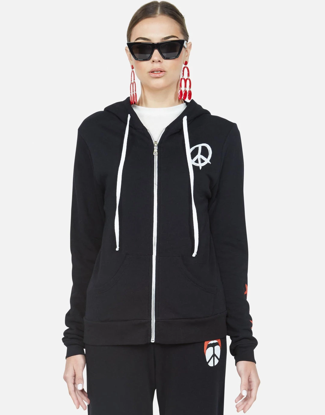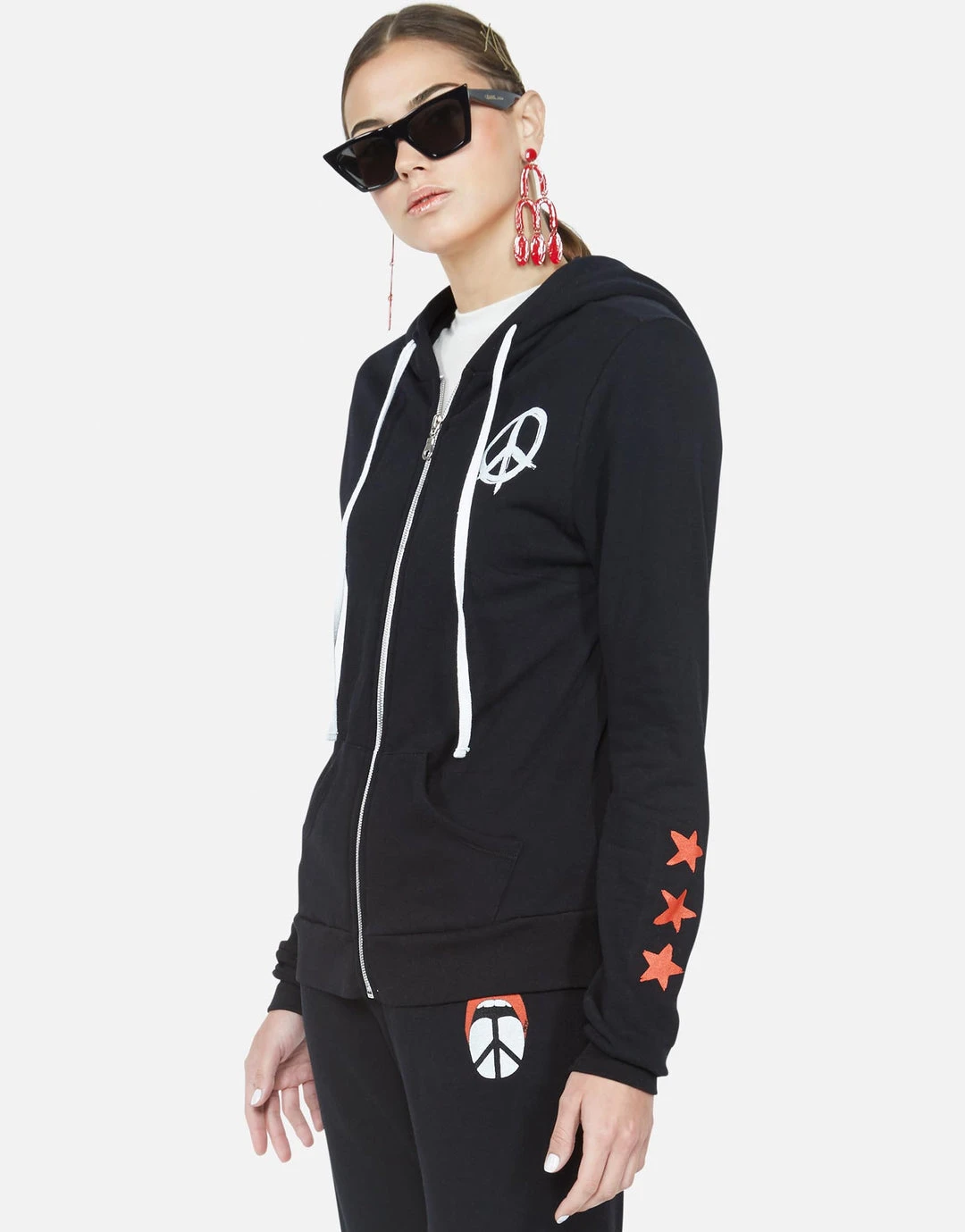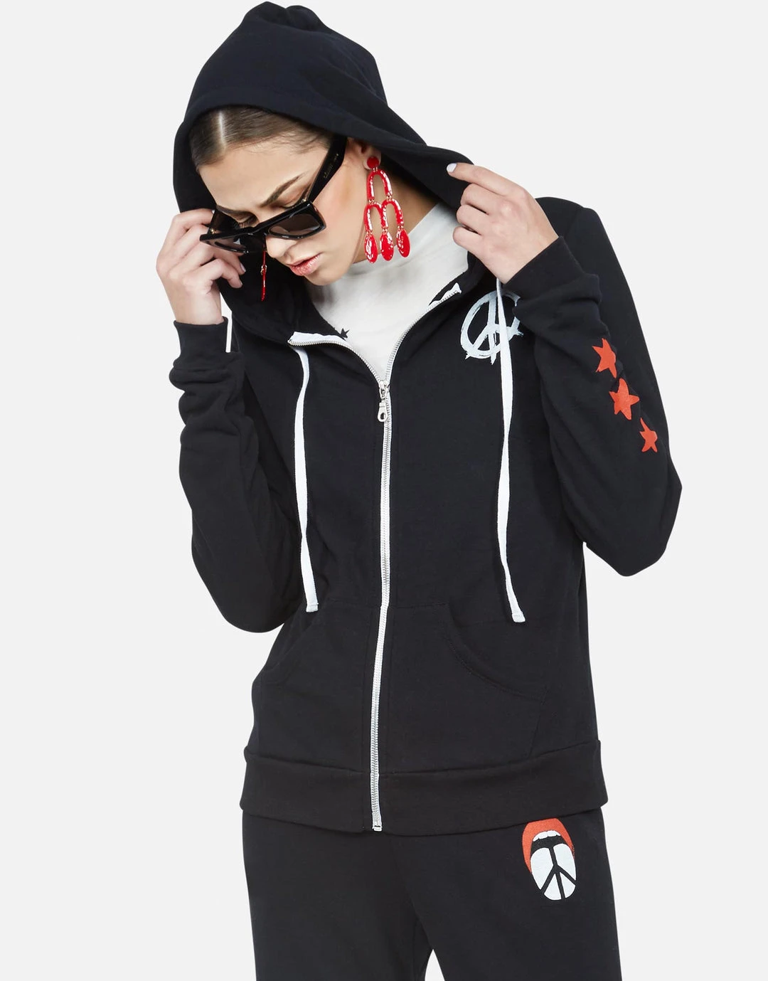 Peace Tongue & Stars Printed on Super Soft Pullover Hoodie in Black by Lauren Moshi.