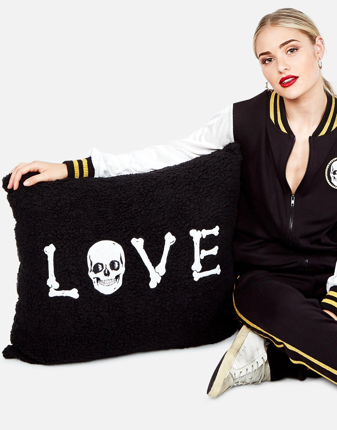 Love Bones Patch Faux Fur Pillow in Black by Lauren Moshi.