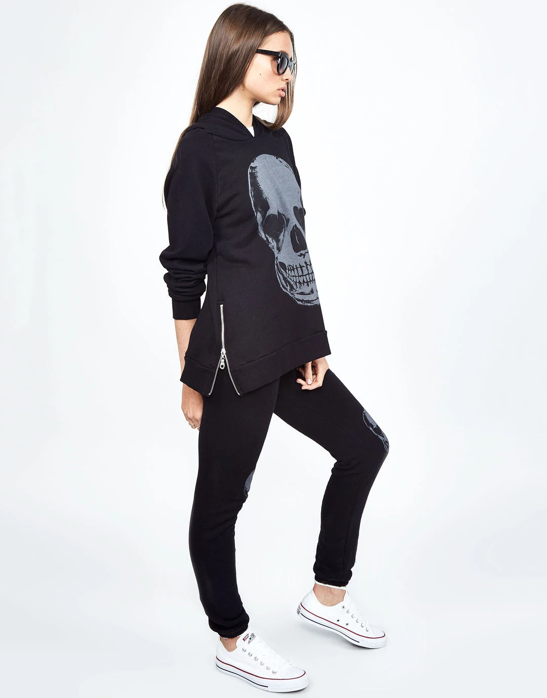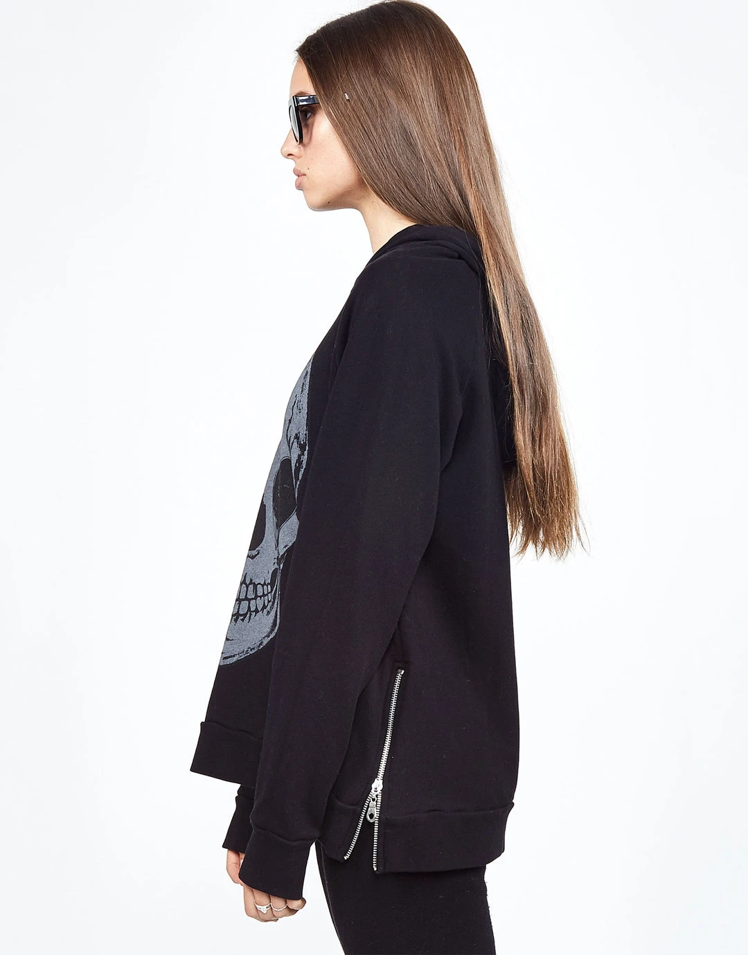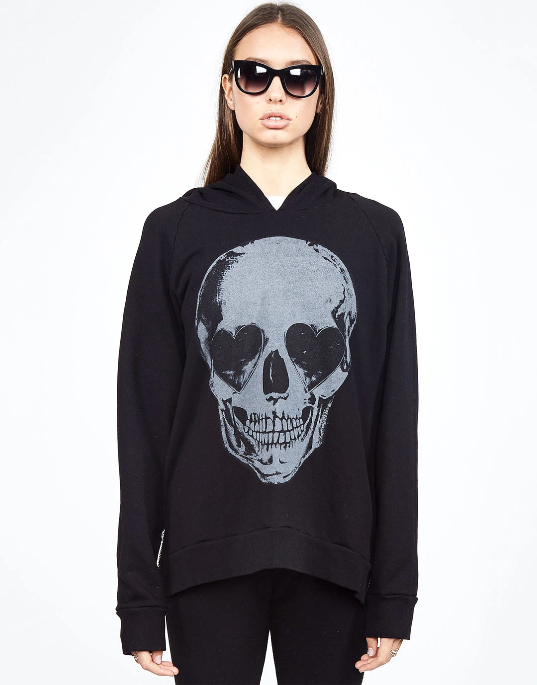 Heart Eye Skull Printed on Super Soft Lightweight Hoodie in Black by Lauren Moshi.