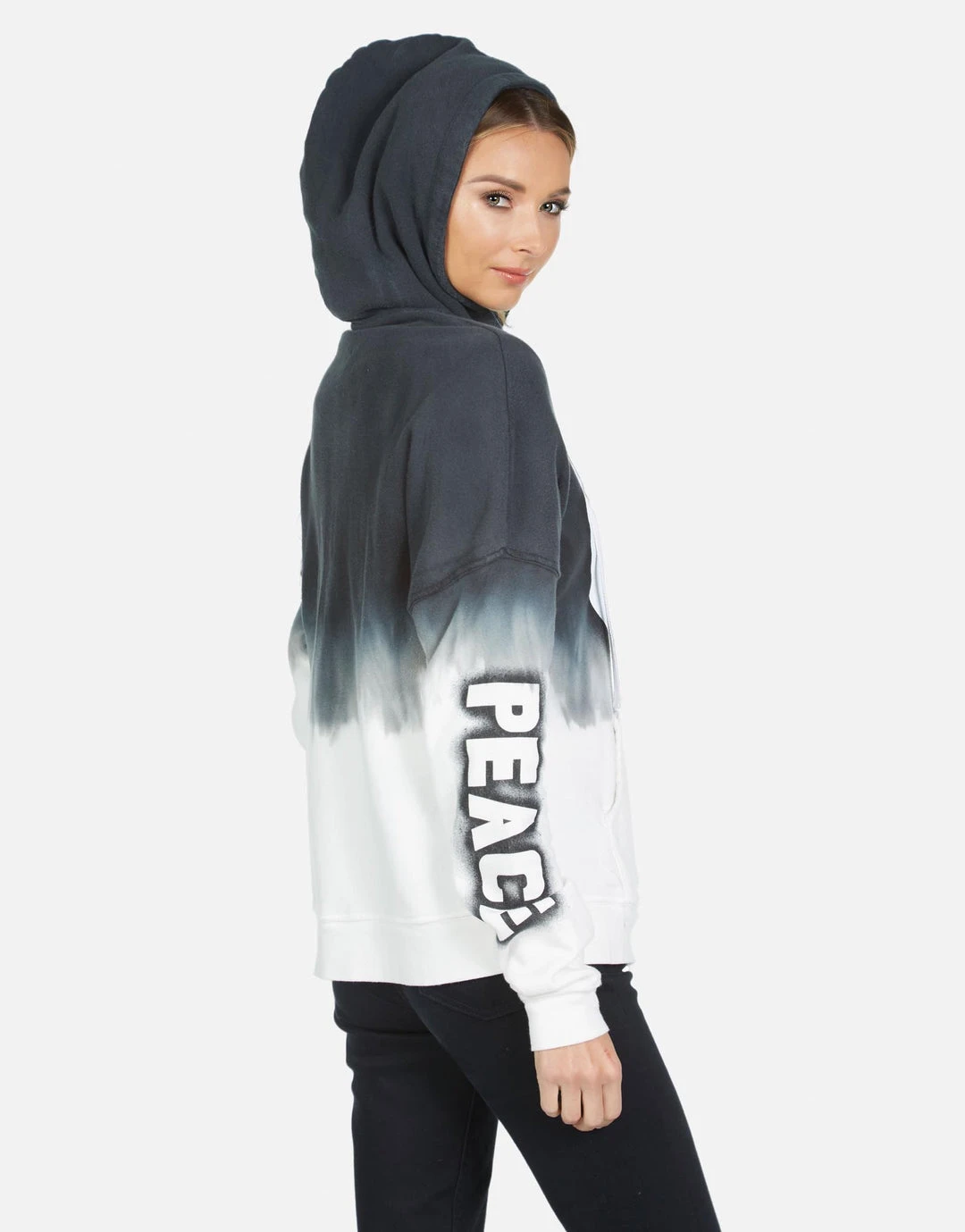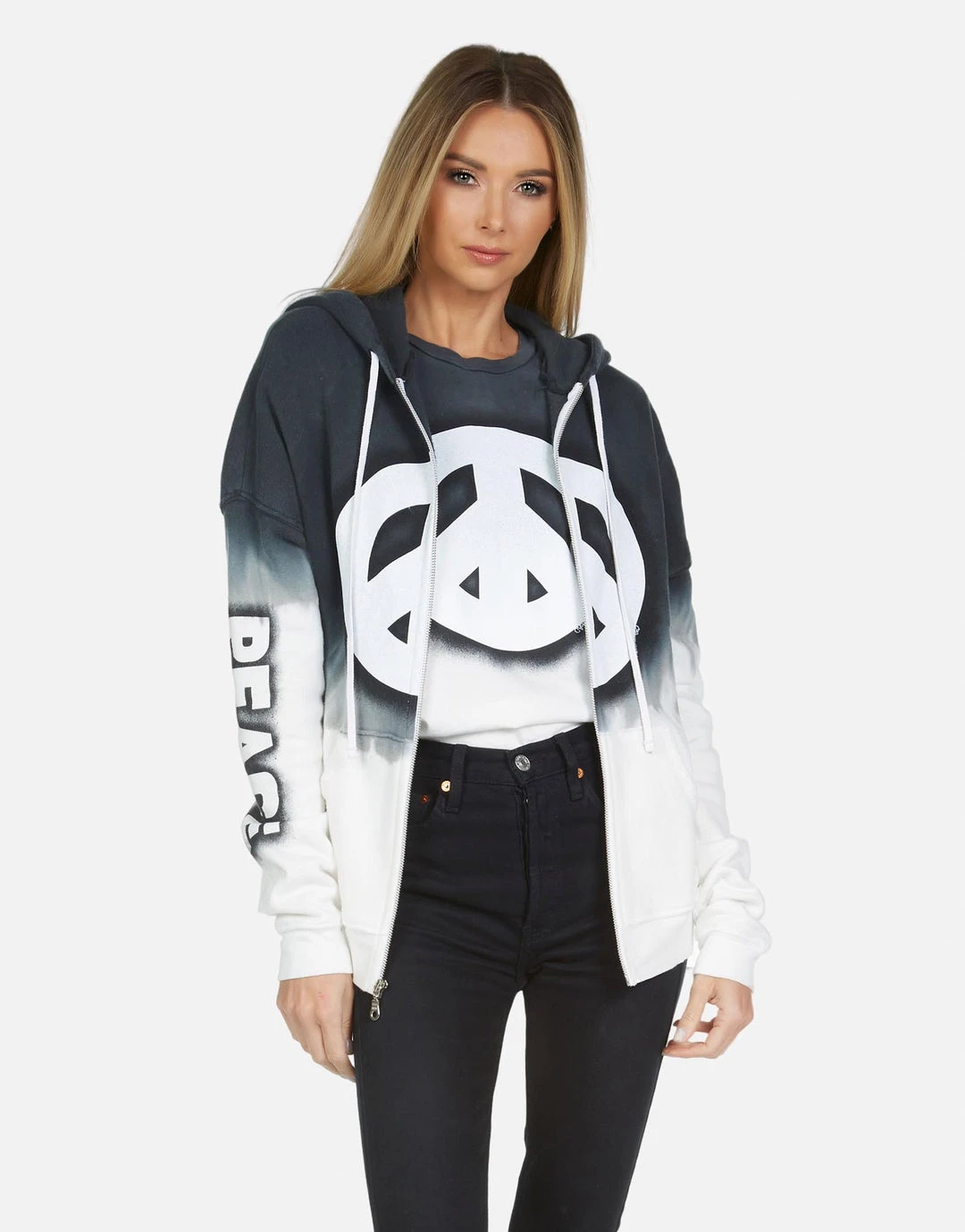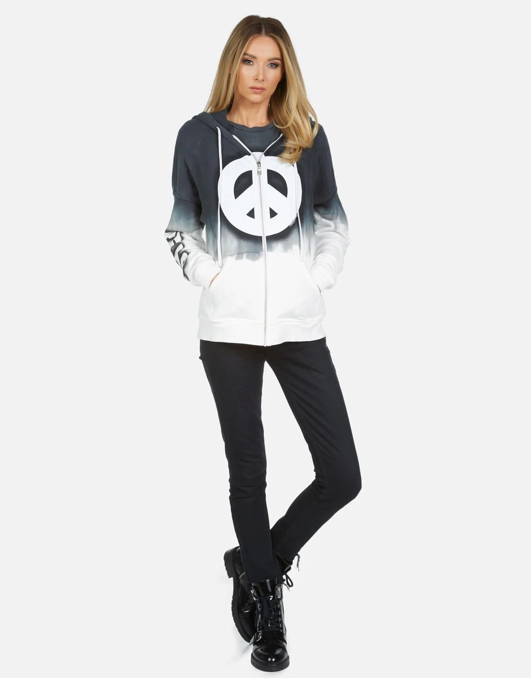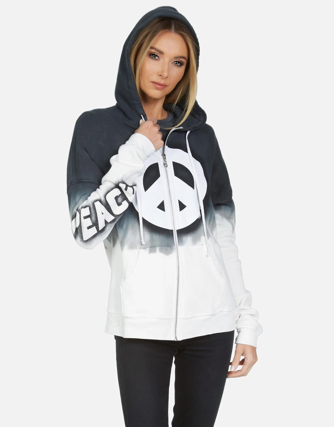 Airbrush Peace Printed on Ultra Soft Lightweight Hoodie in Storm Cloud by Lauren Moshi.