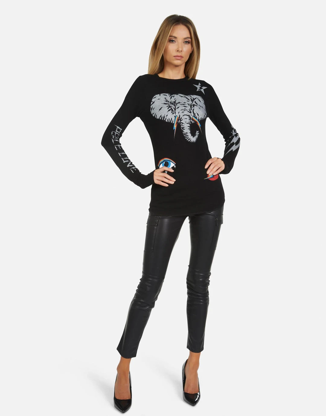 Electric Elephant Elements Printed on Ultra Soft Lightweight Thermal in Black by Lauren Moshi.