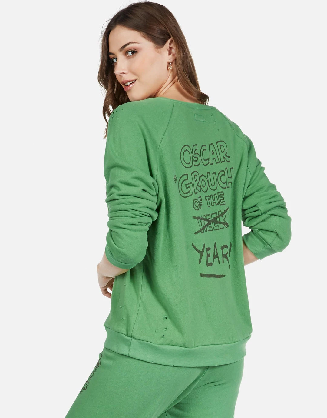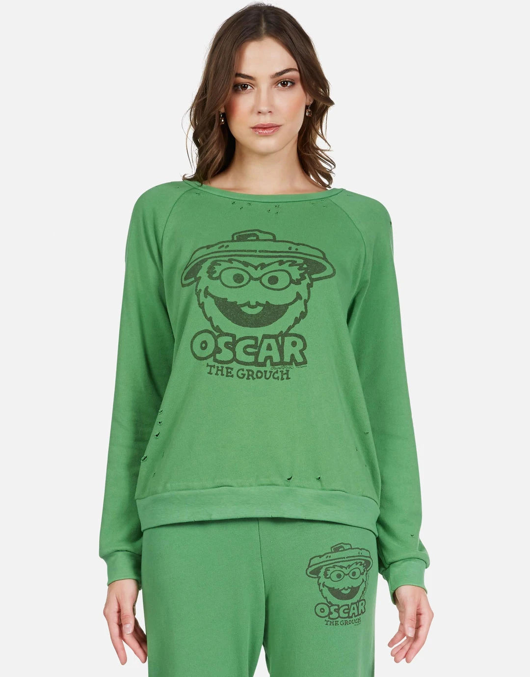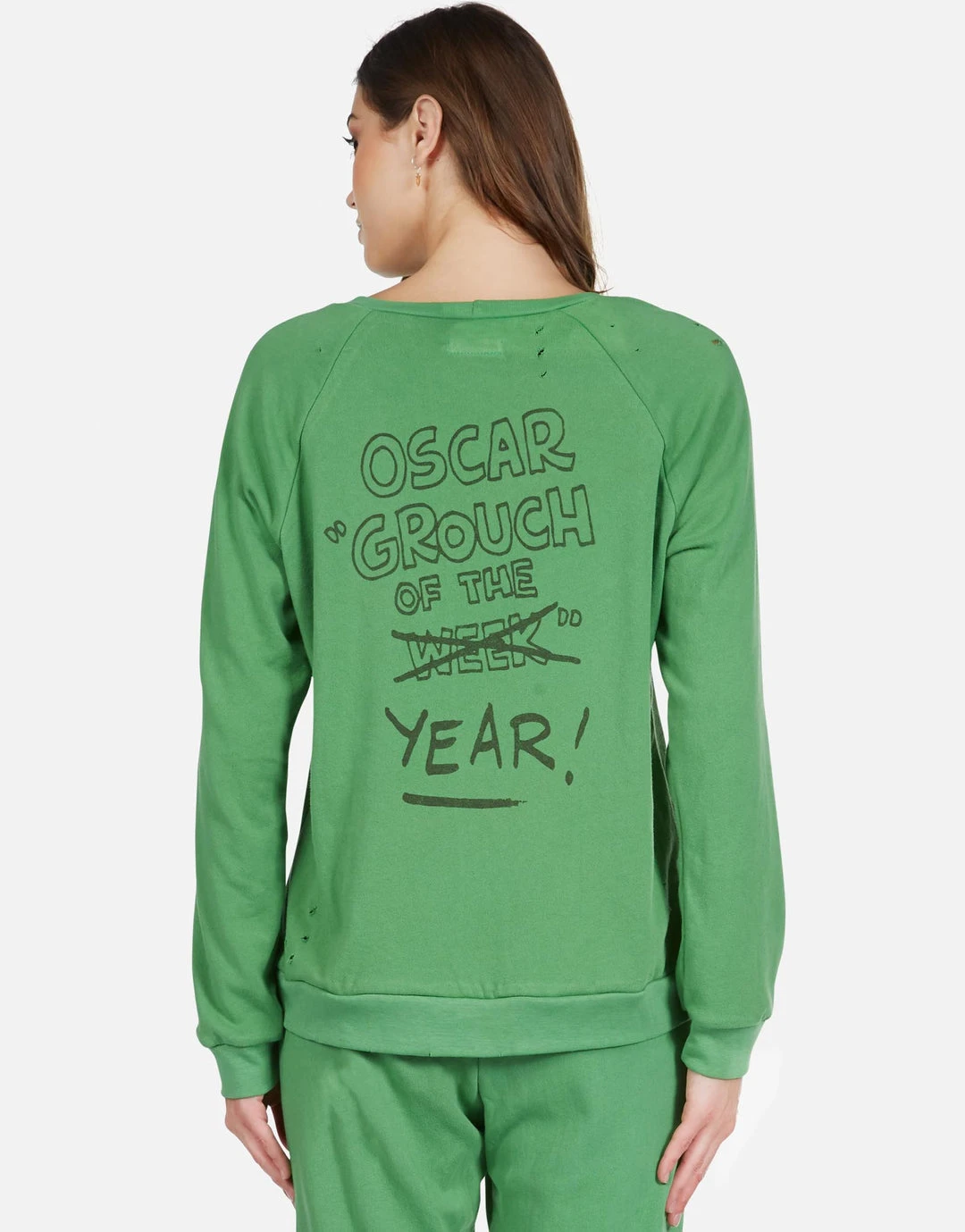 Oscar Grouch of The Year Printed on Ultra Soft Lightweight Pullover in Leaf Green by Lauren Moshi.