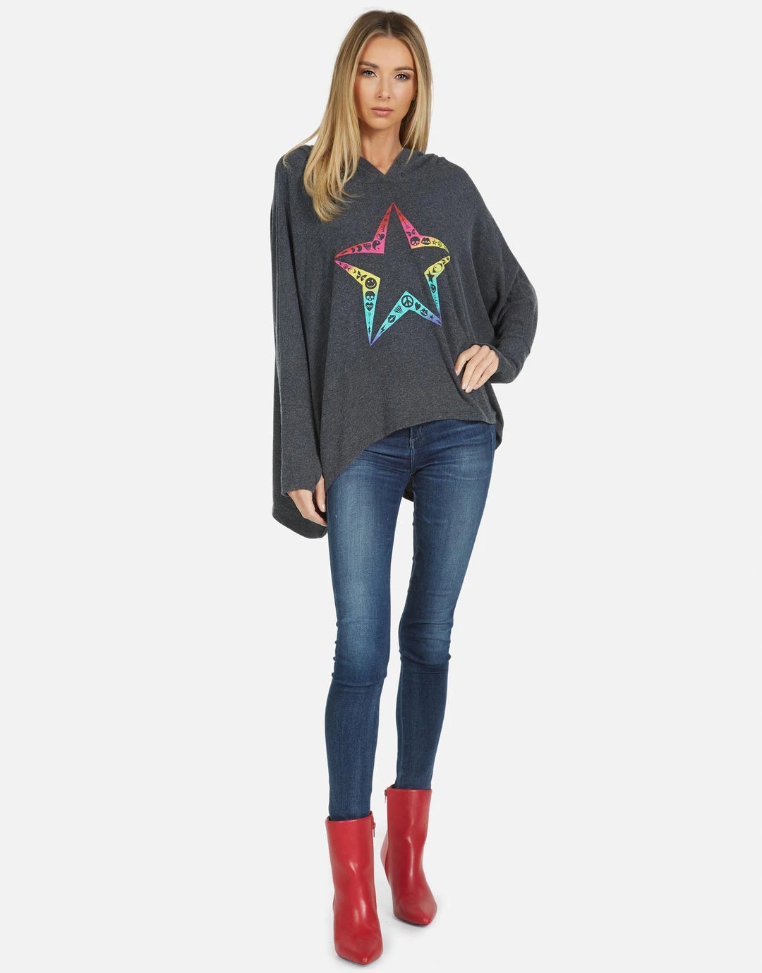 Color Elements Star on Ultra Soft Lightweight Pullover w/Hood in Heather Black by Lauren Moshi.