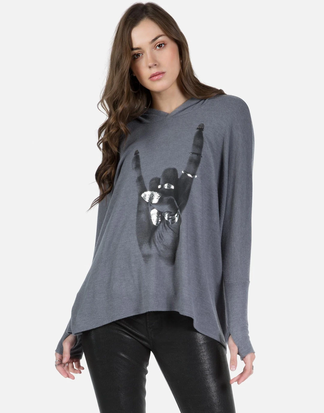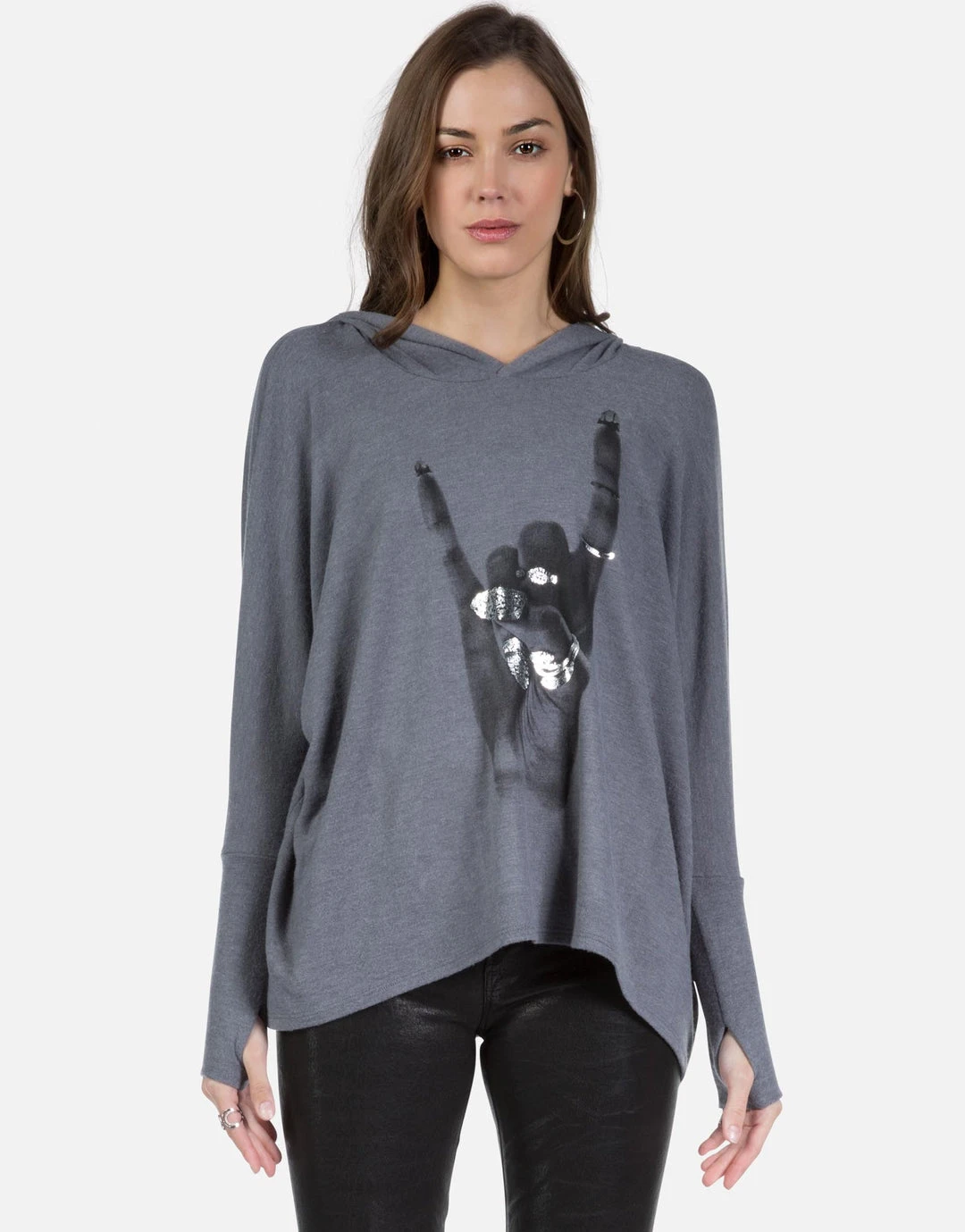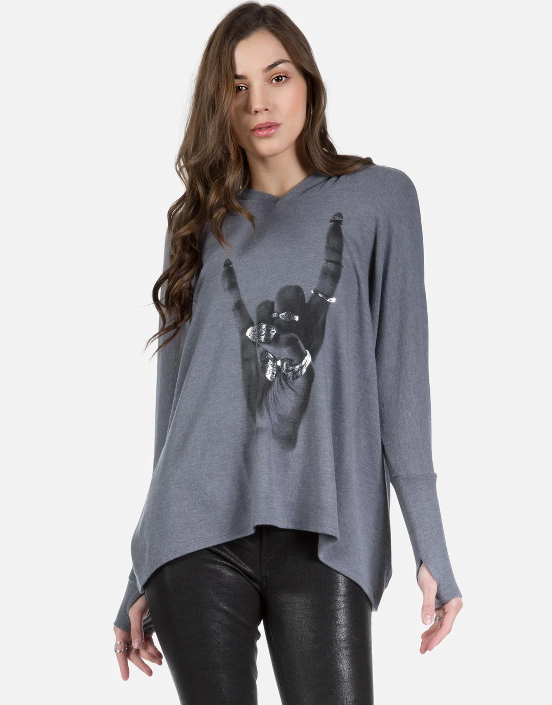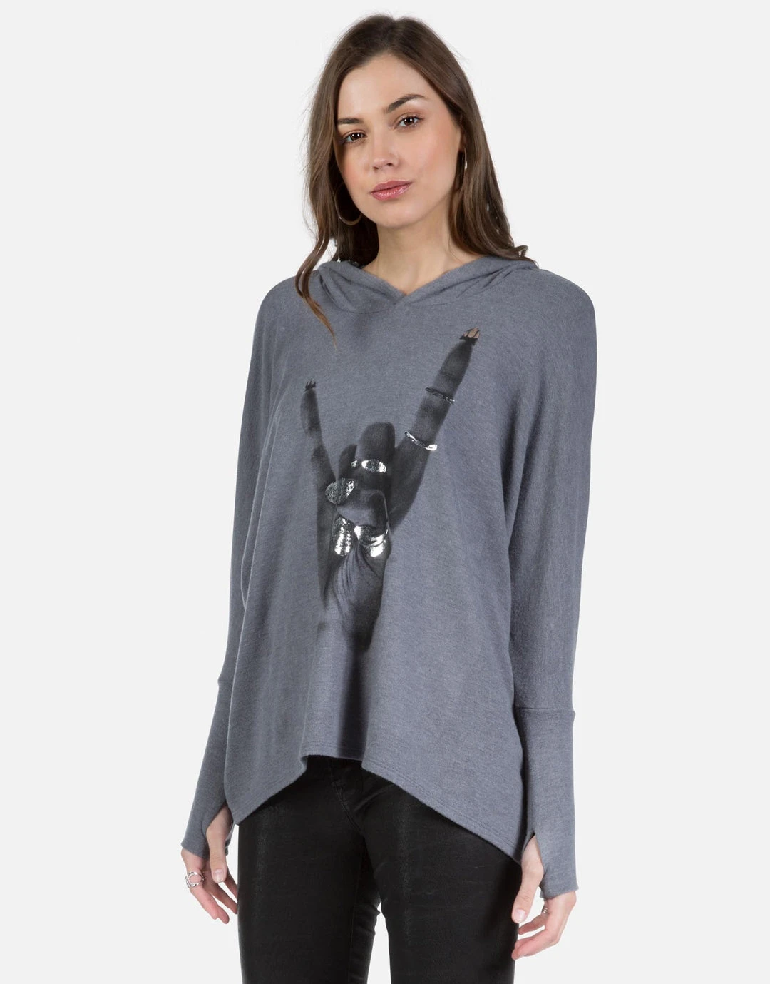 Rock Hand w/ Foil Printed on Super Soft Lightweight Pullover in Asphalt.