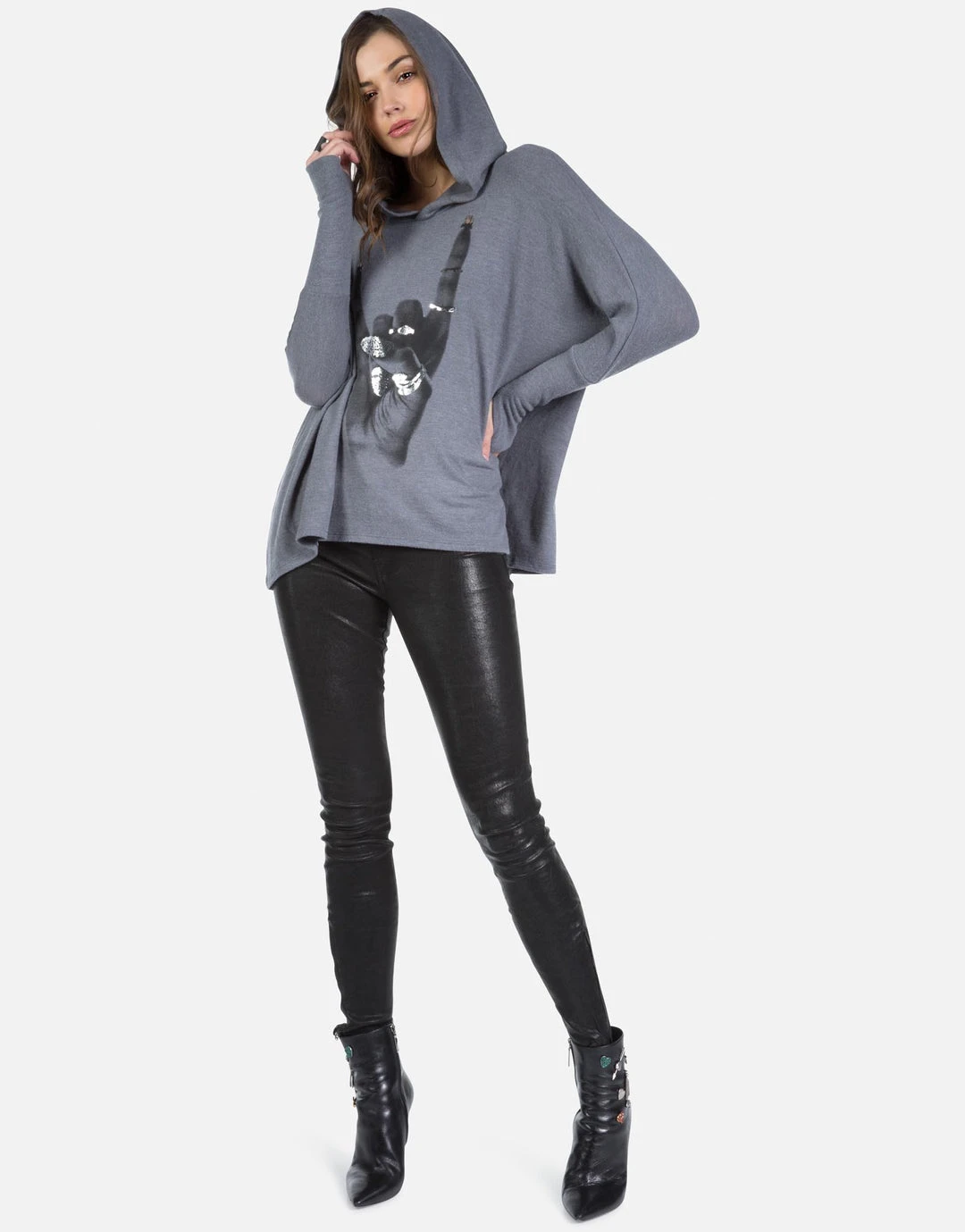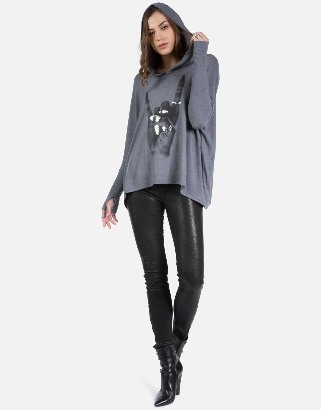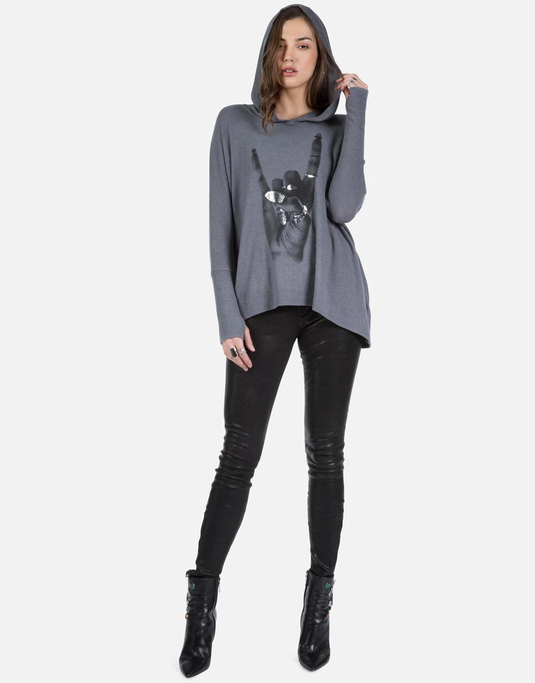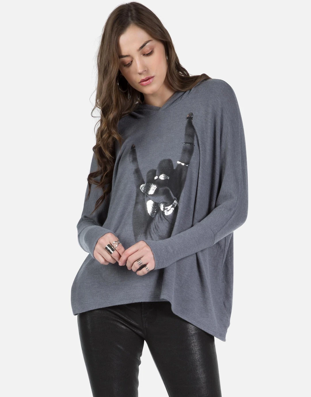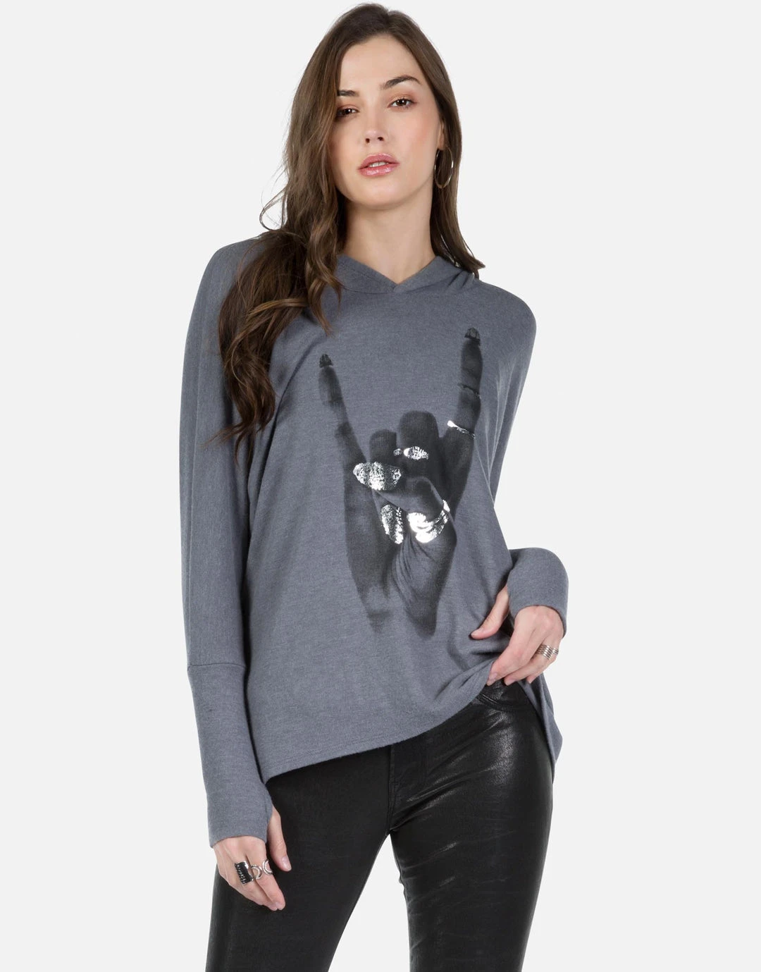 Rock Hand w/ Foil Printed on Super Soft Lightweight Pullover in Asphalt.