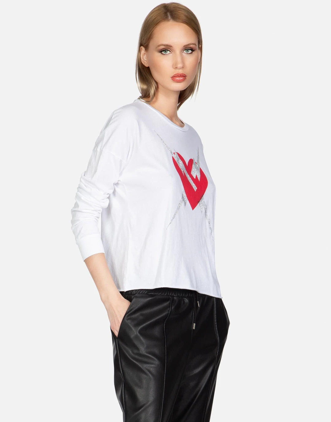 Lightning Love Printed on Ultra Soft Lightweight Tee in White by Lauren Moshi.
