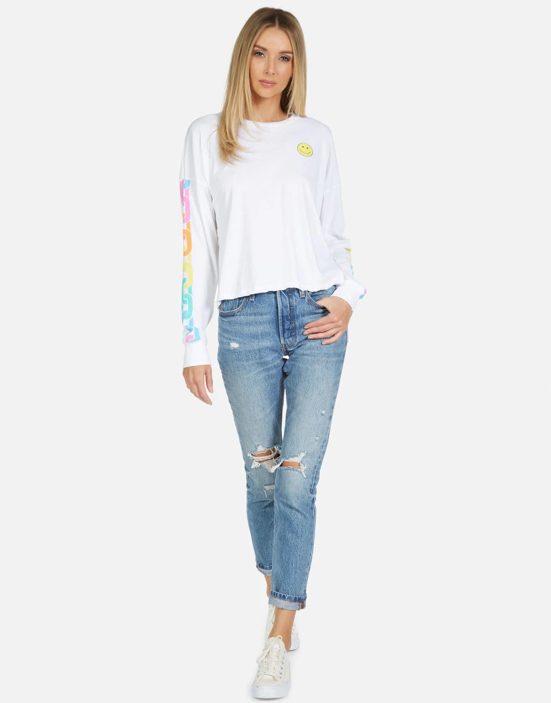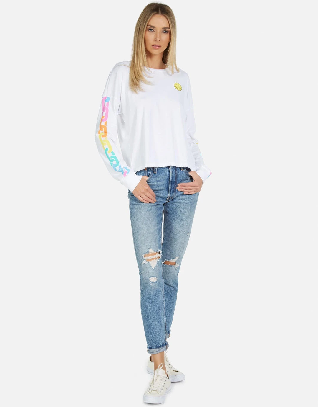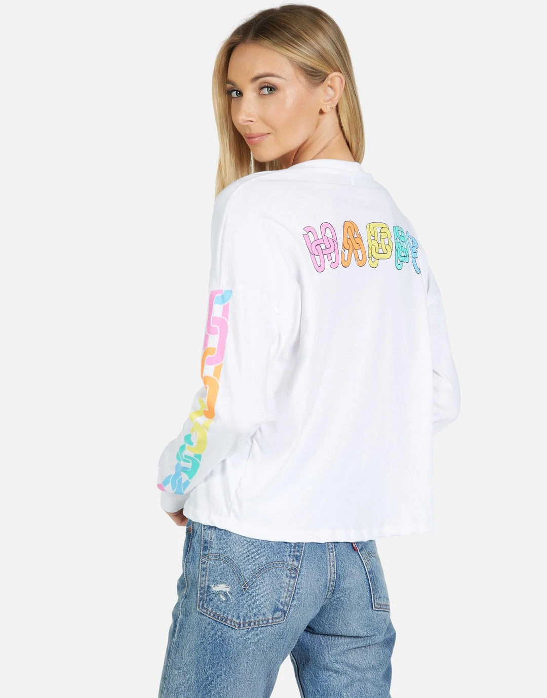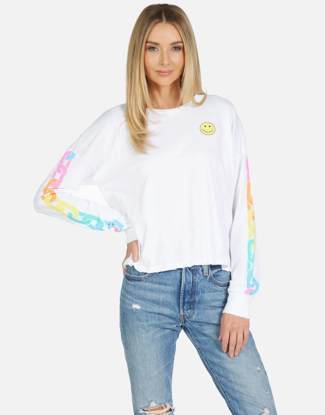 Happy Chains on Ultra Soft Lightweight Pullover in White by Lauren Moshi.