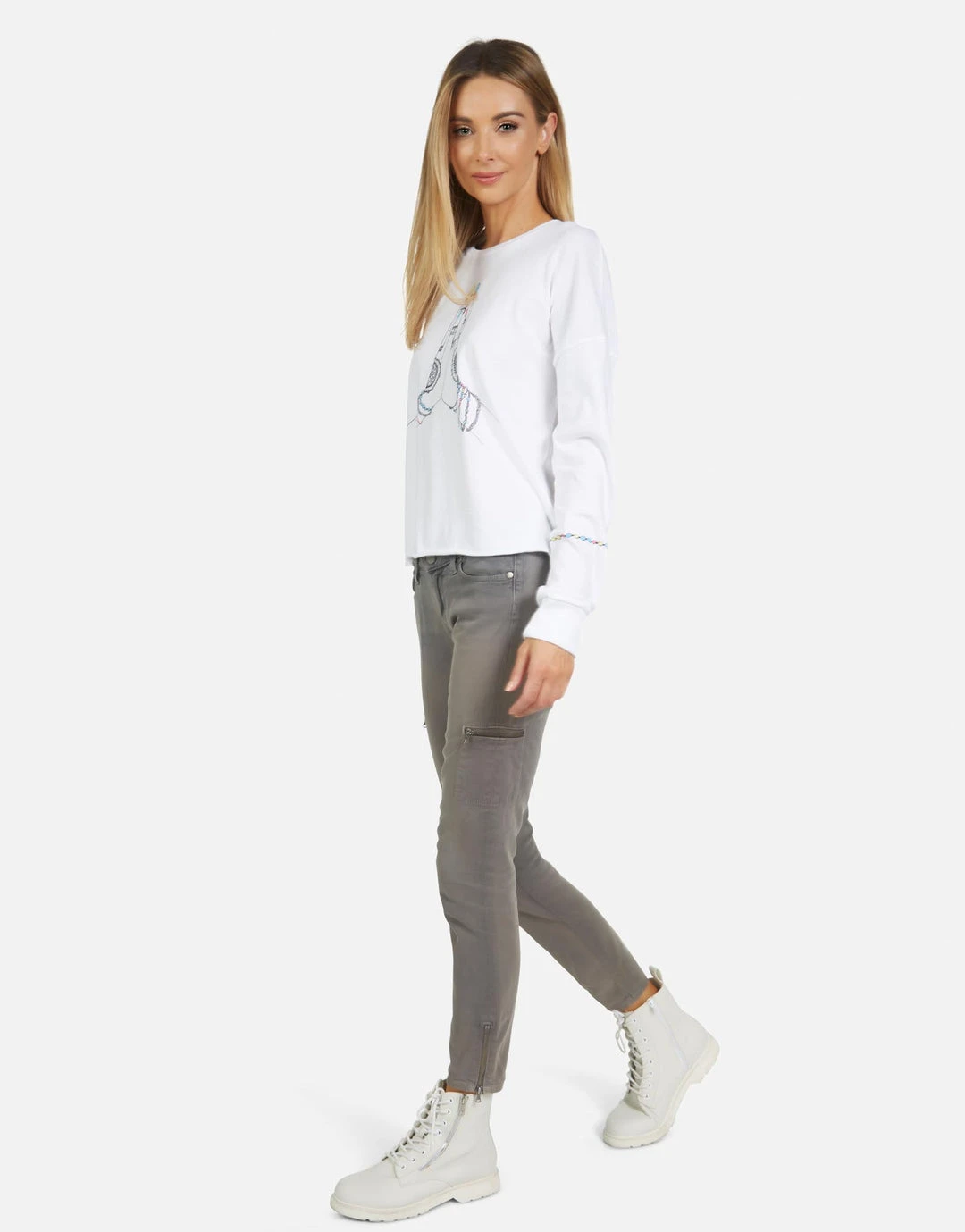 Prayer Hands Printed on Ultra Soft Lightweight Tee in White by Lauren Moshi.