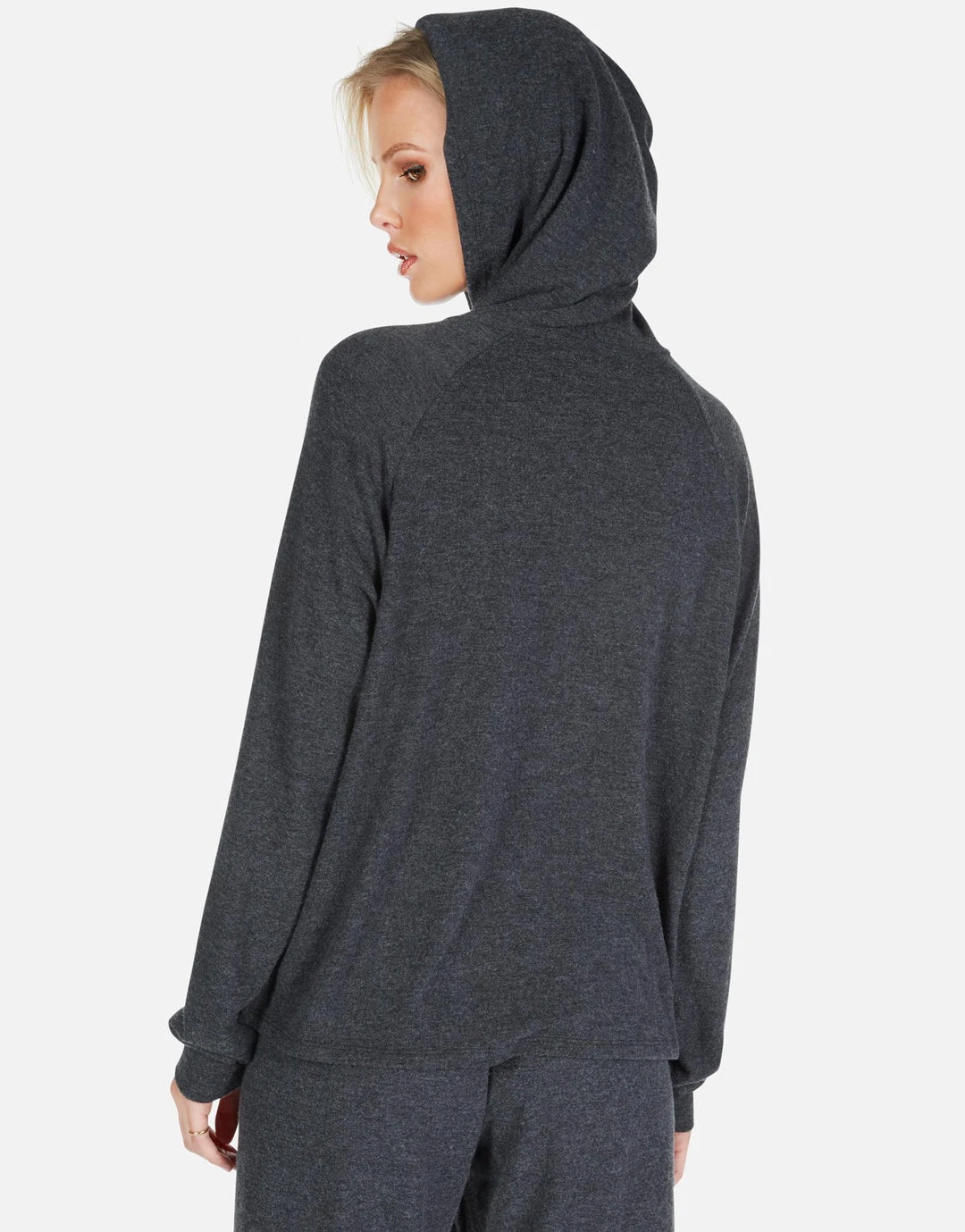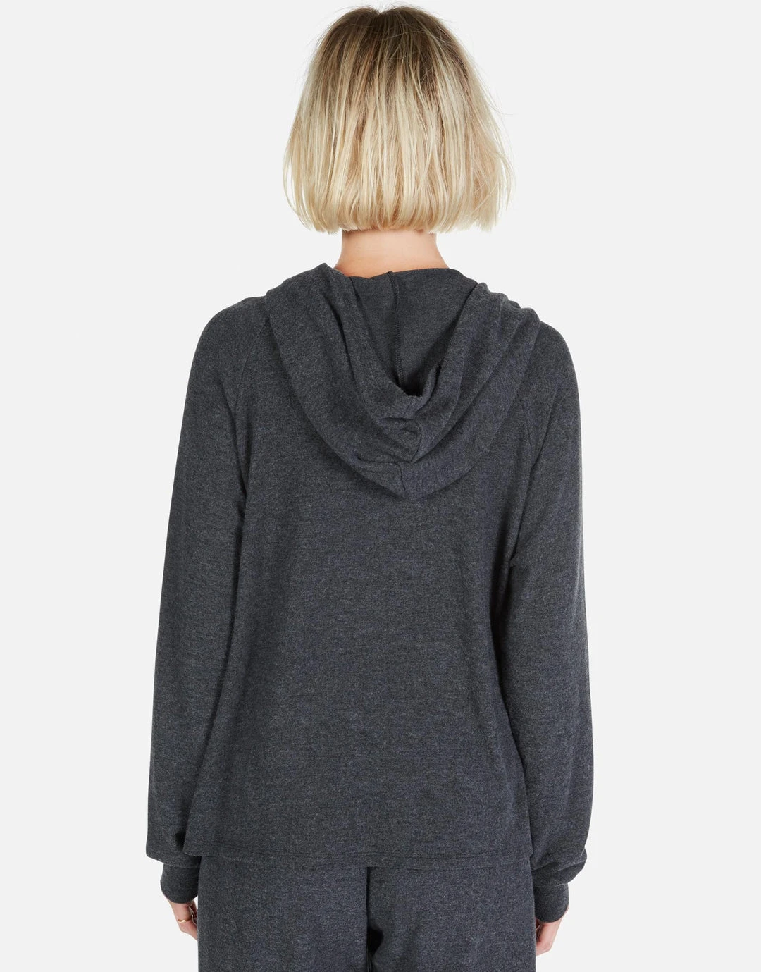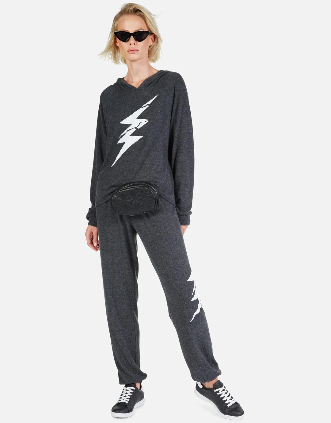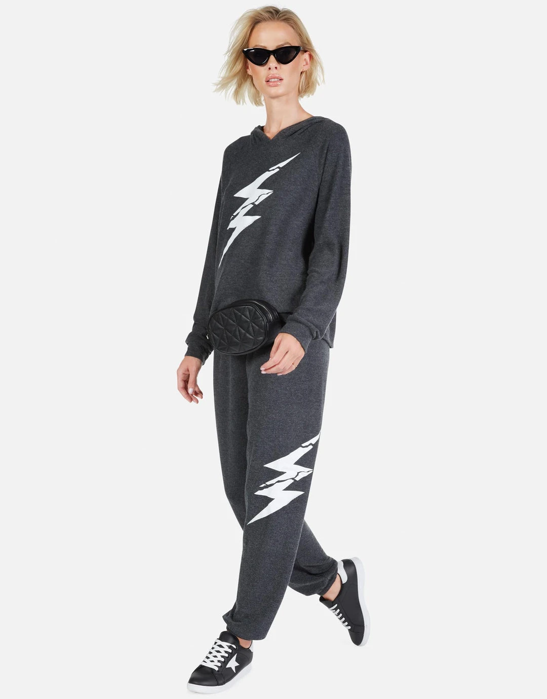 Cracked Lightning Printed on Ultra Soft Lightweight Hoodie in Heather Black by Lauren Moshi.