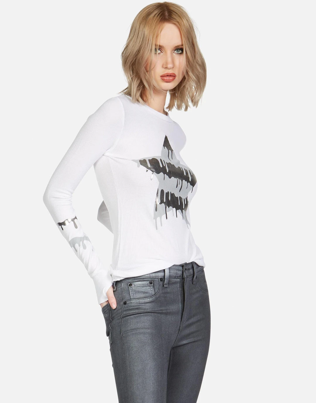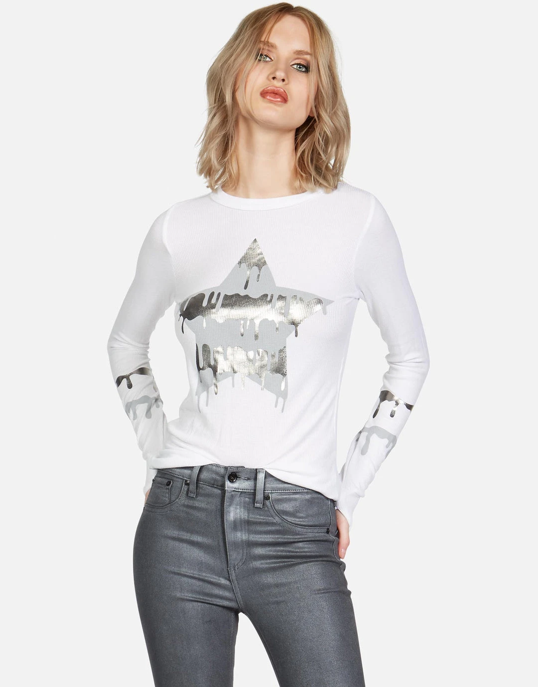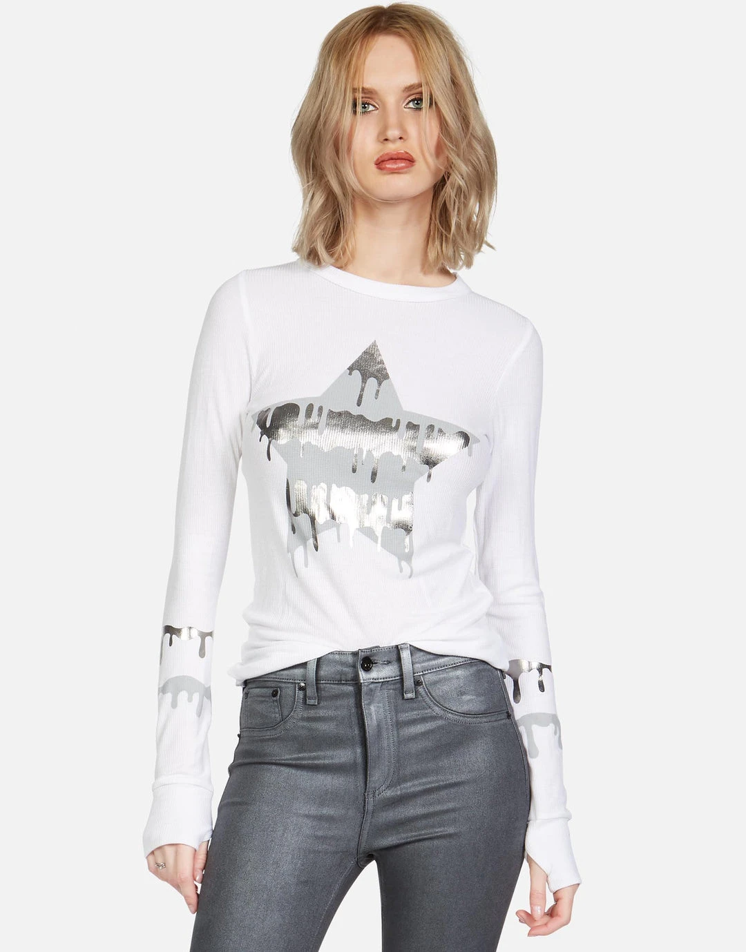 Dripping Star Printed on Ultra Soft Lightweight Thermal in White by Lauren Moshi.