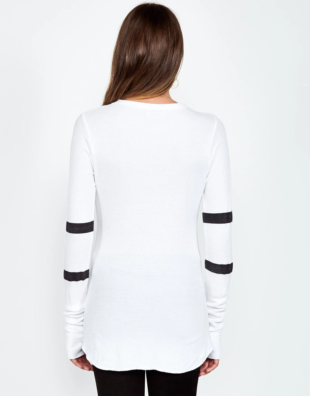 Pierced Biting Lip Face Printed on Ultra Soft Lightweight Thermal in White by Lauren Moshi.