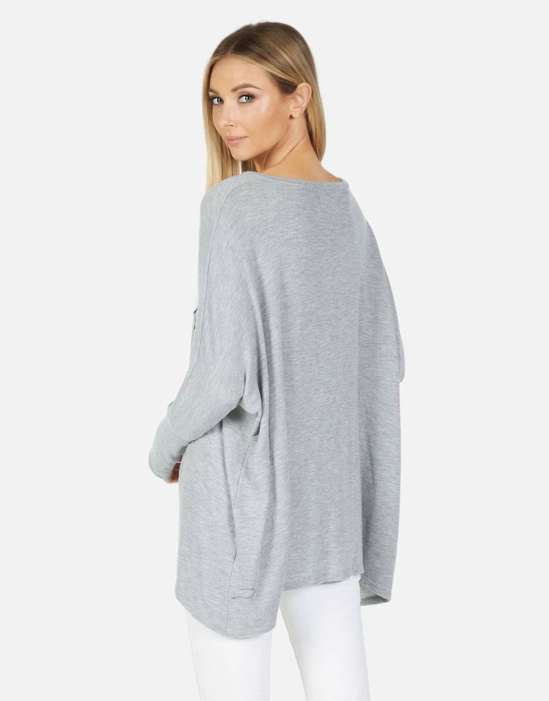 Record Eye Printed on Ultra Soft Lightweight Pullover in Heather Grey by Lauren Moshi.
