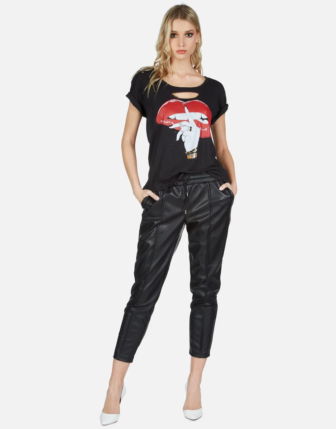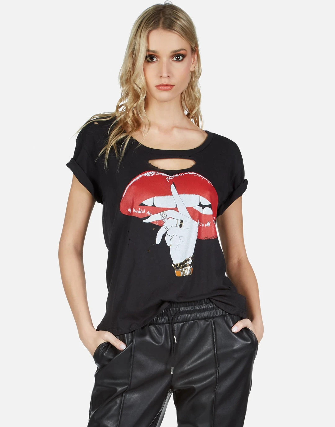XO Shh Lip Printed on Ultra Soft Lightweight Tee in Onyx by Lauren Moshi.