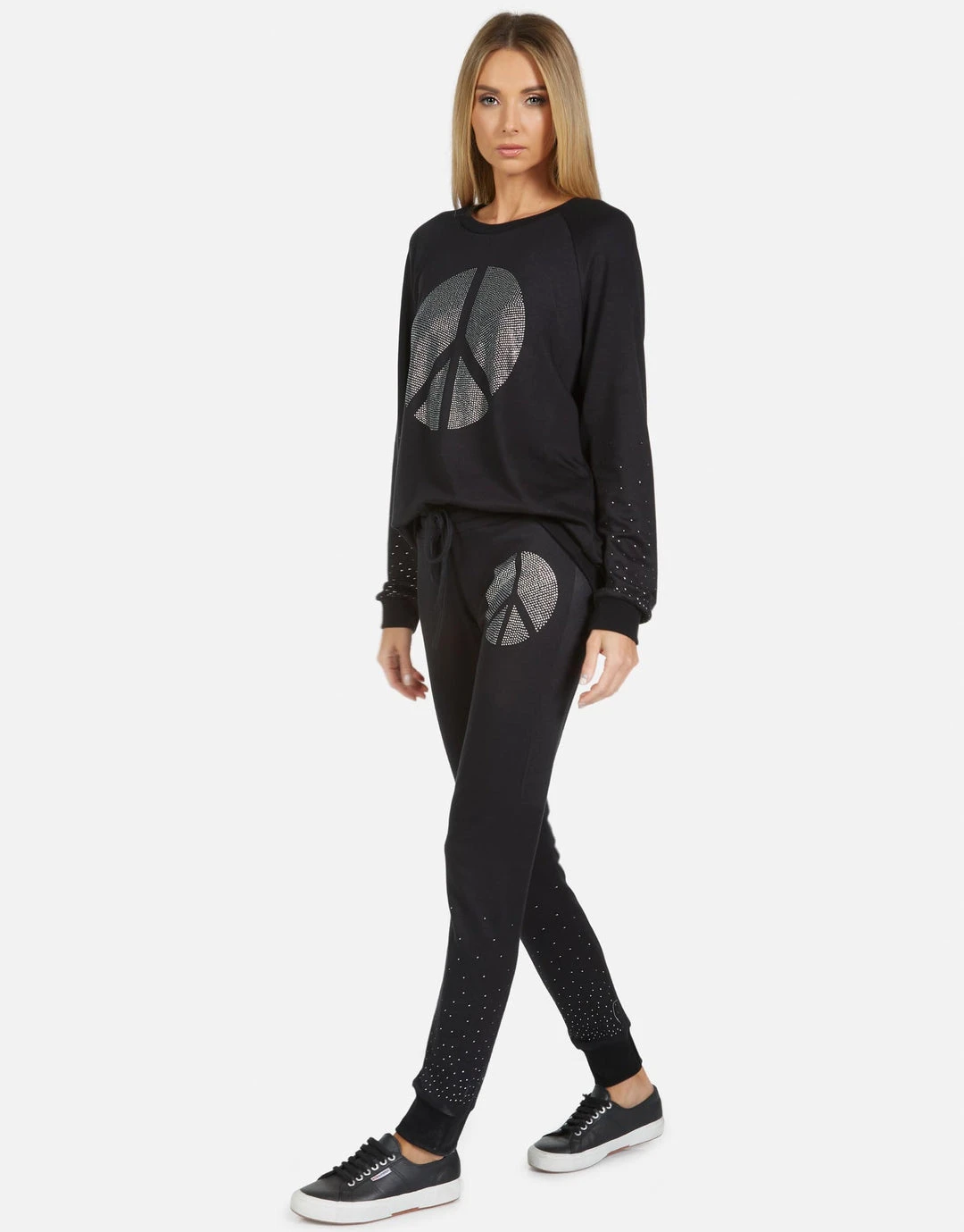 Crystal Peace on Ultra Soft Lightweight Pullover in Black by Lauren Moshi.