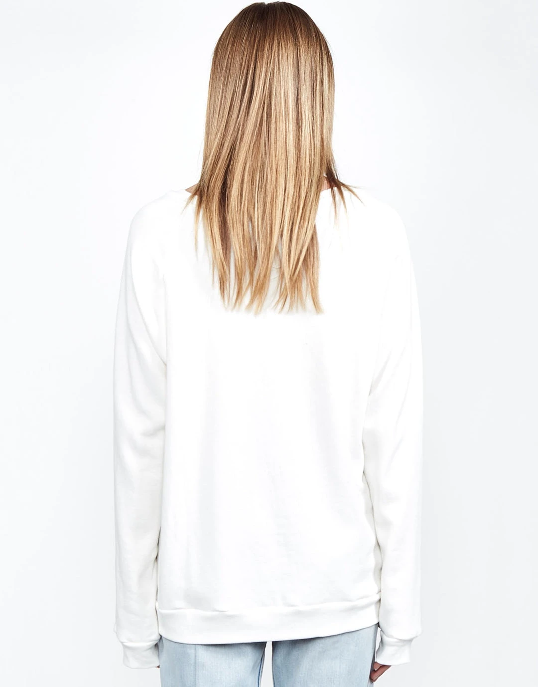 Pink Foil Zipper Mouth Printed on Ultra Soft Lightweight Pullover in Milk by Lauren Moshi.