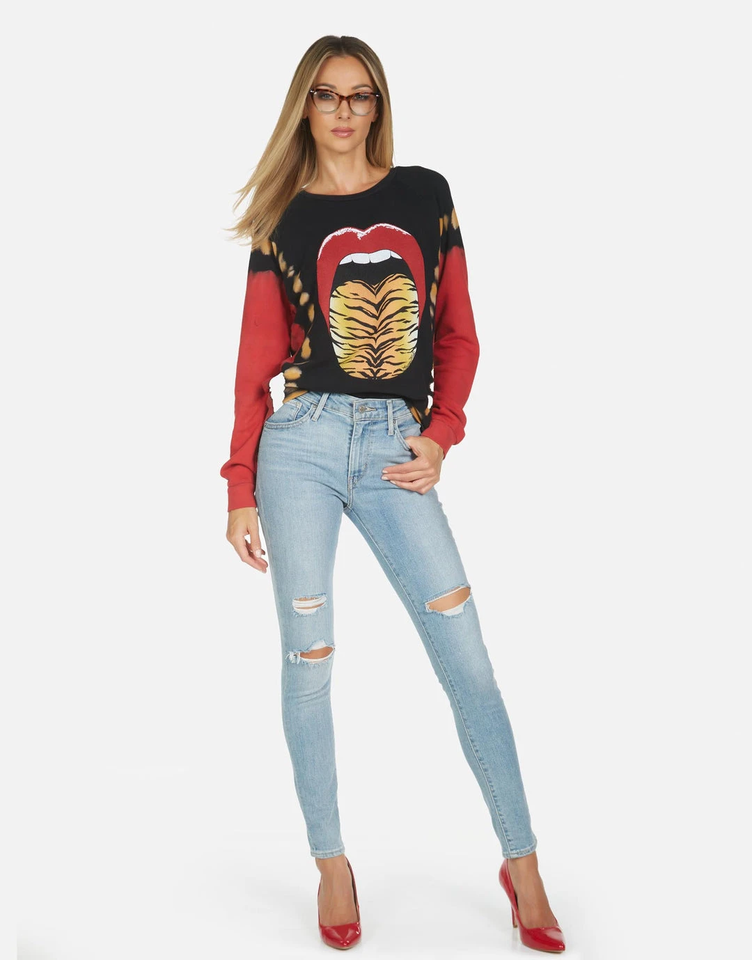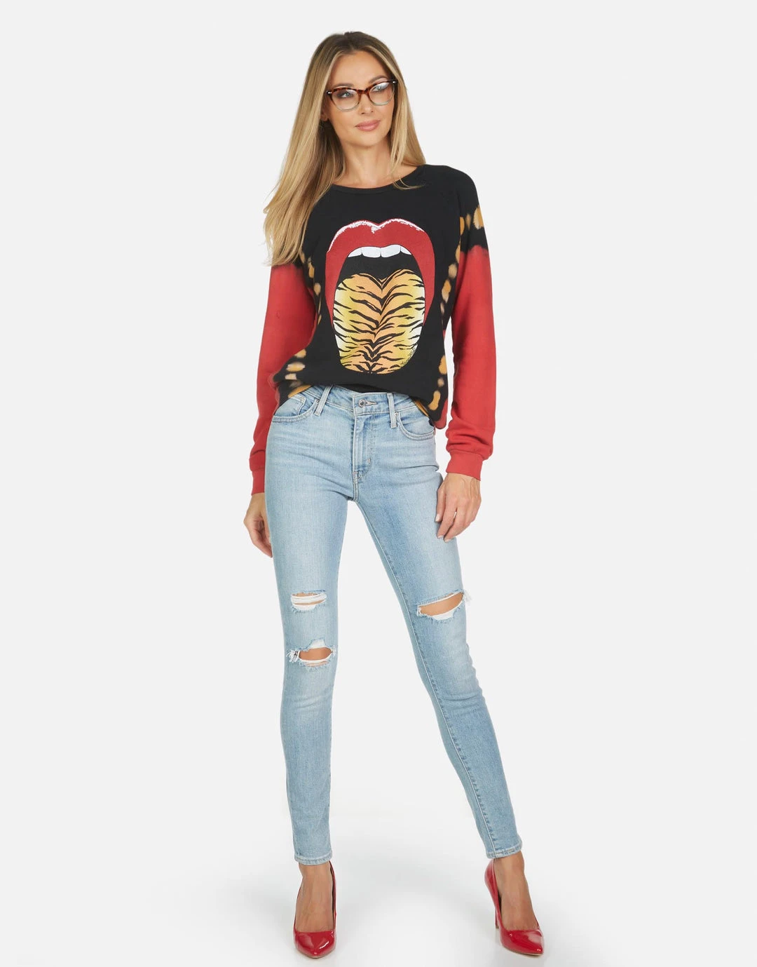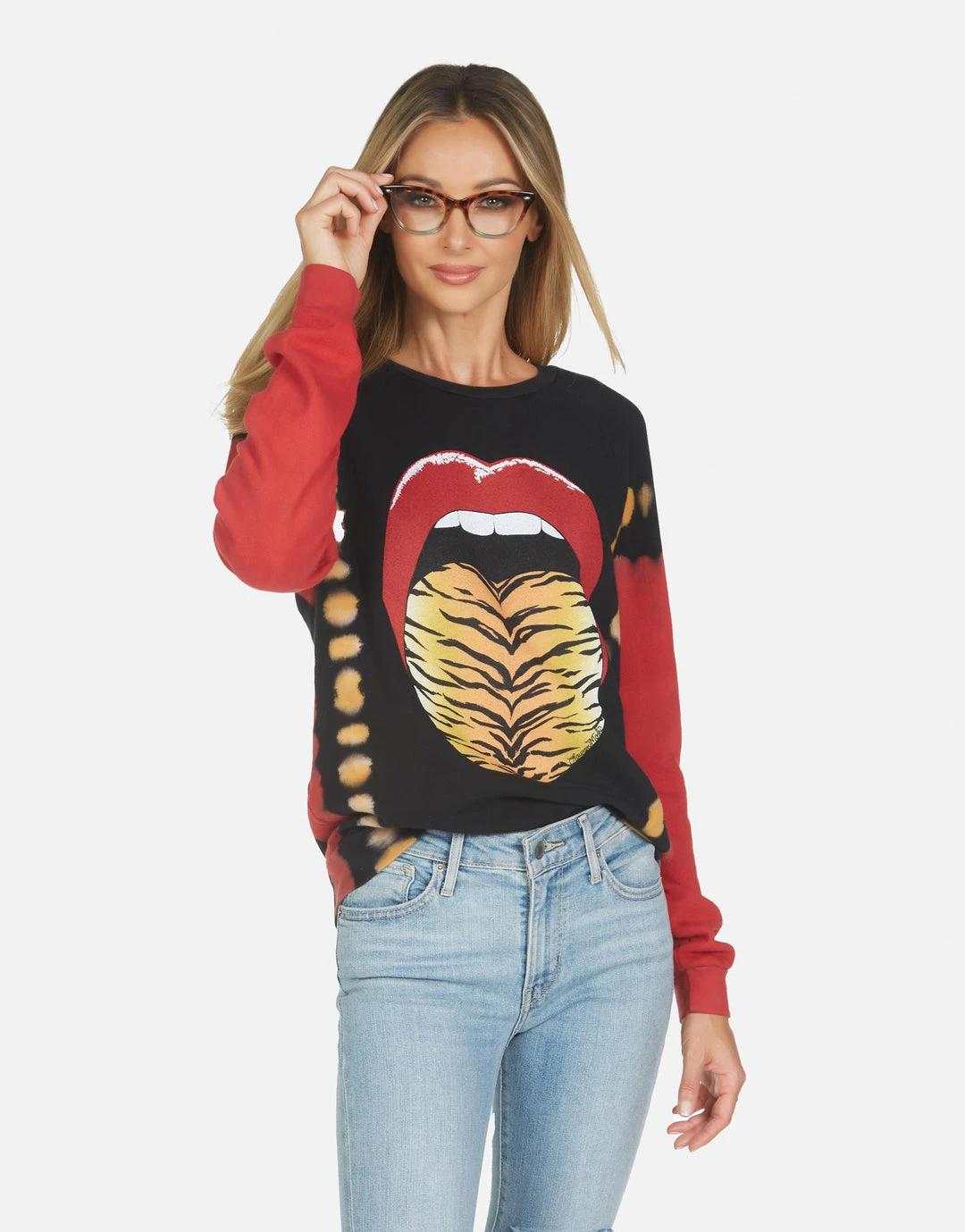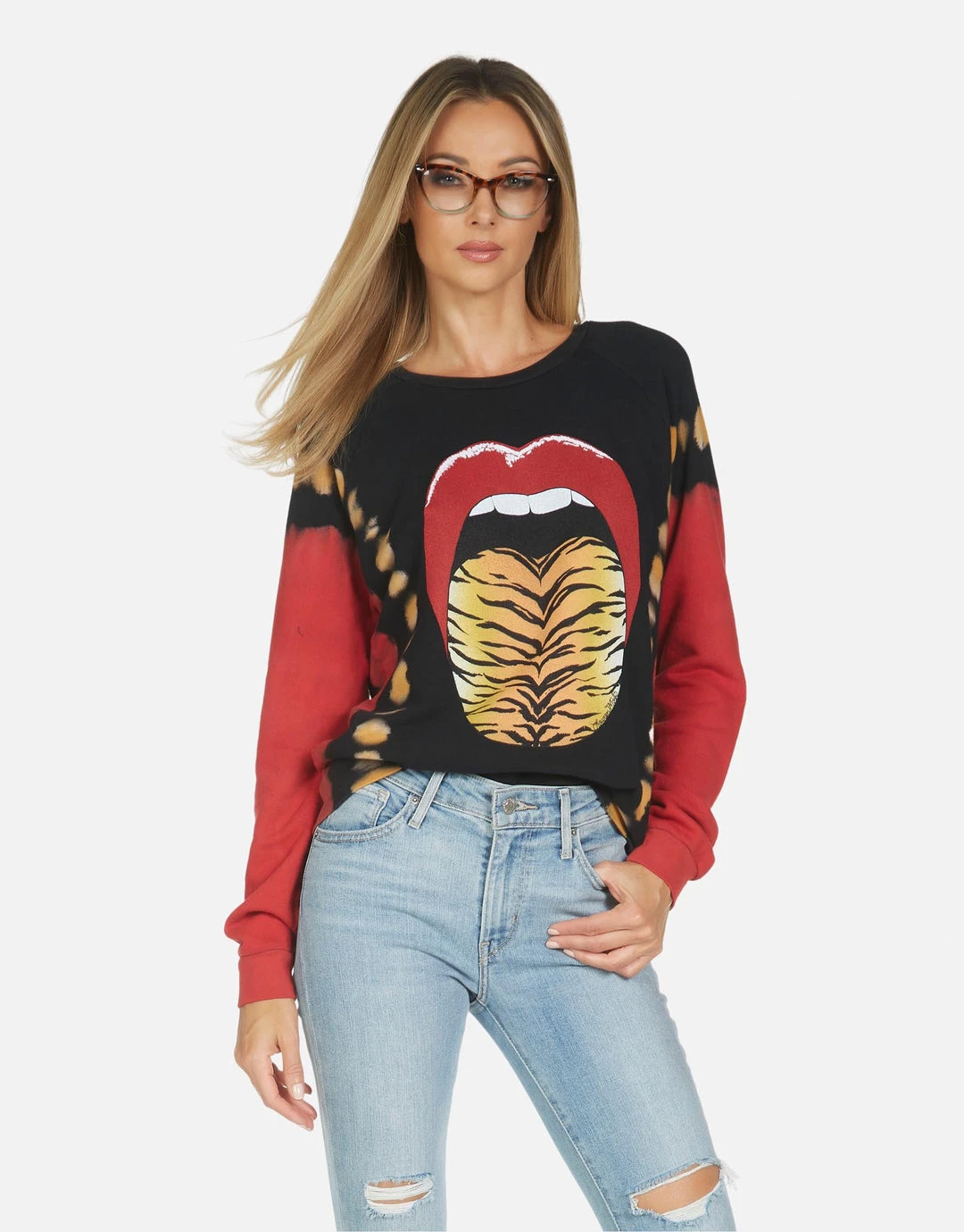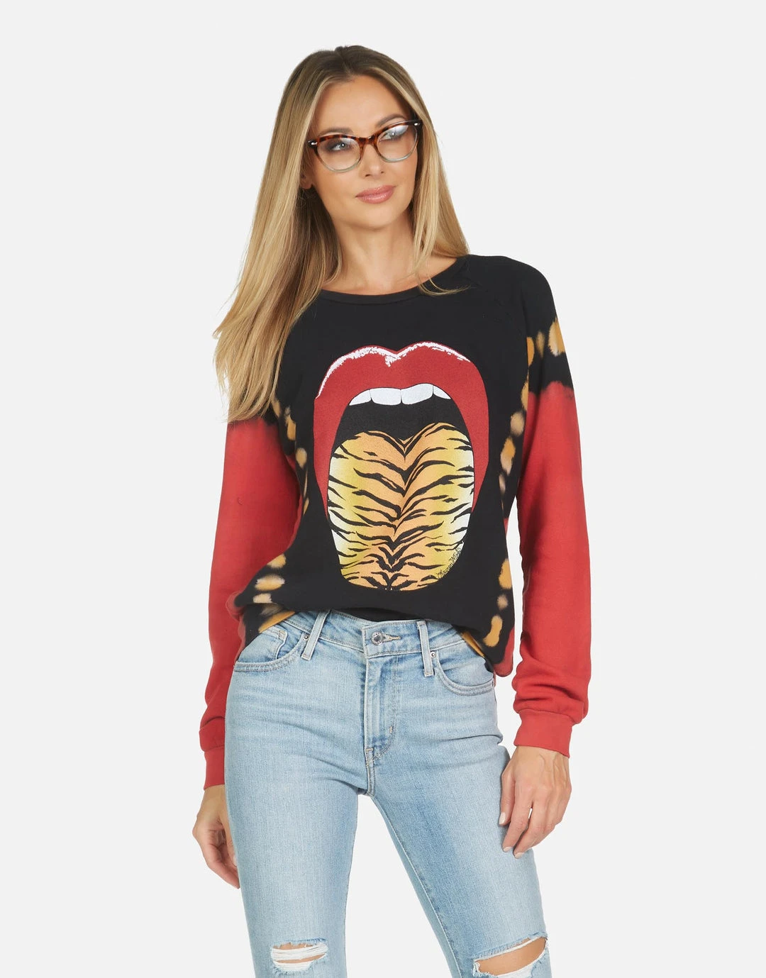 Tiger Tongue Printed on Ultra Soft Lightweight Pullover in Fire Stripe by Lauren Moshi.
