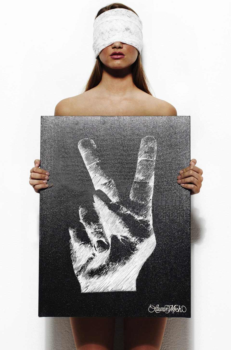 Peace Sign Fine Art Canvas Print on Black by Lauren Moshi.