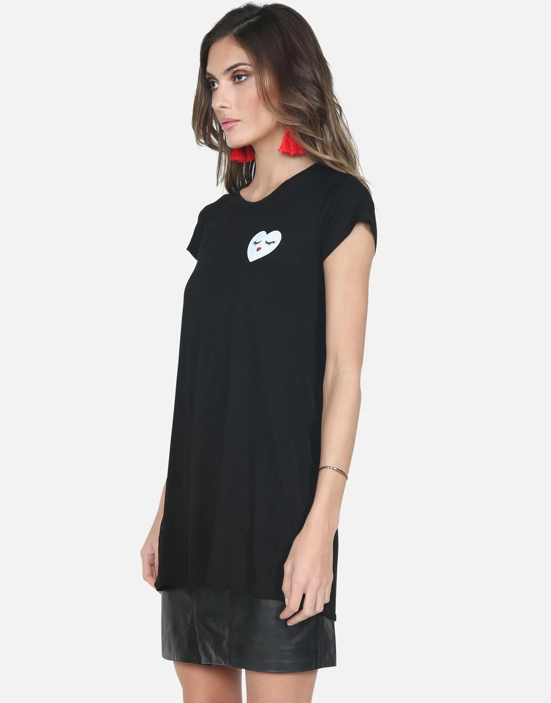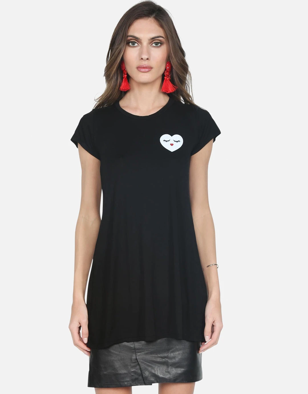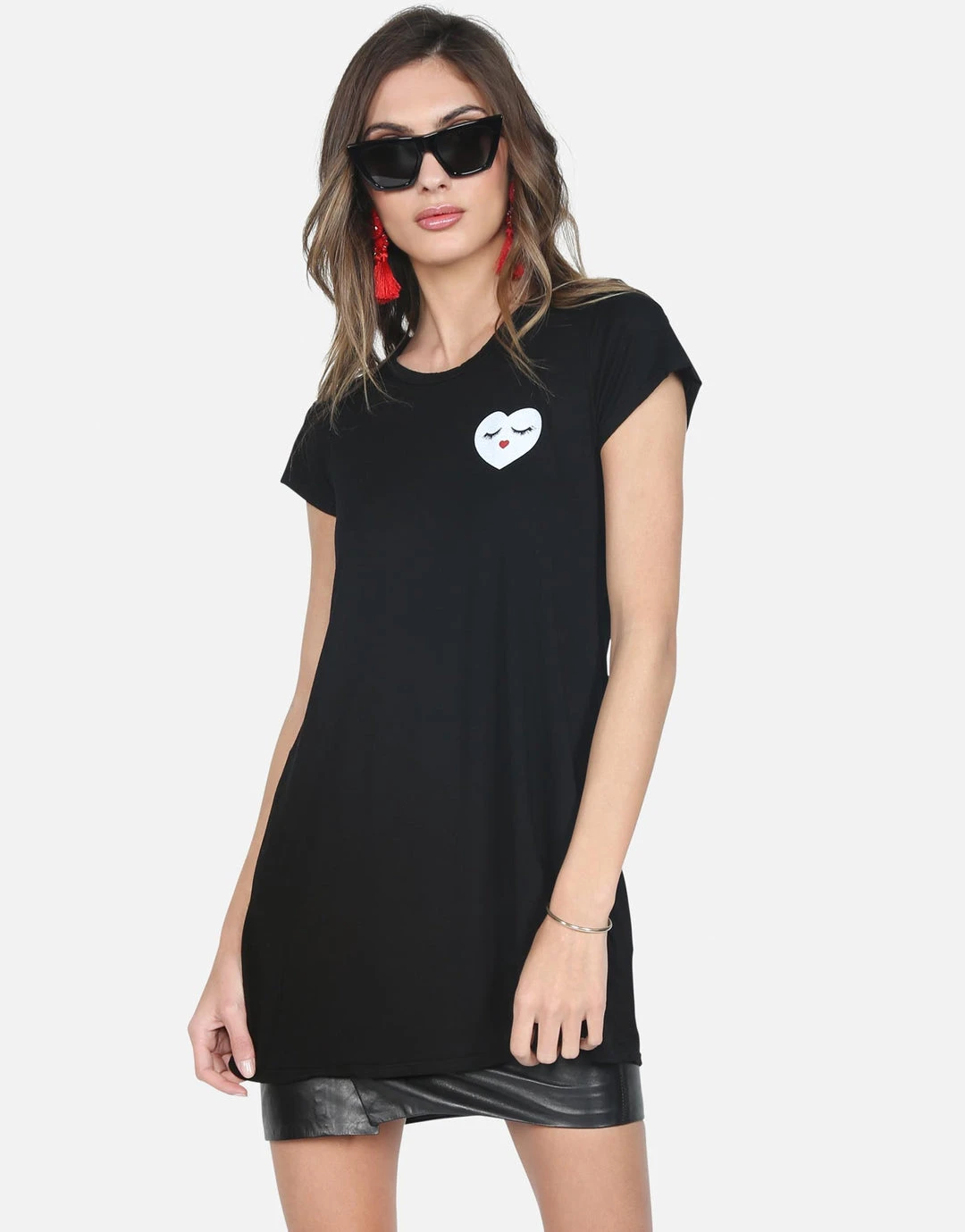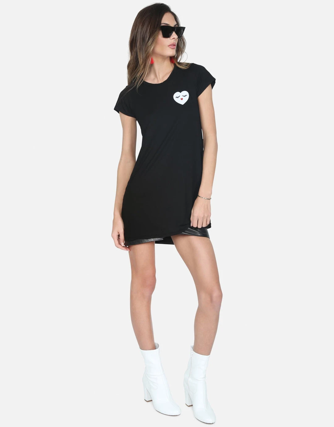 Glam Heart Face Printed on Ultra Soft Lightweight Mini Dress in Black by Lauren Moshi.