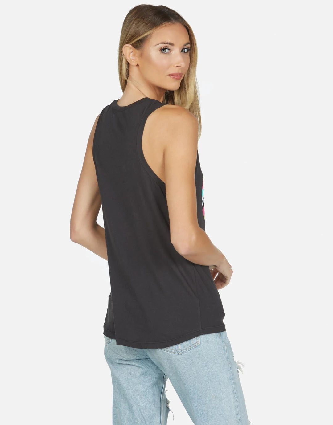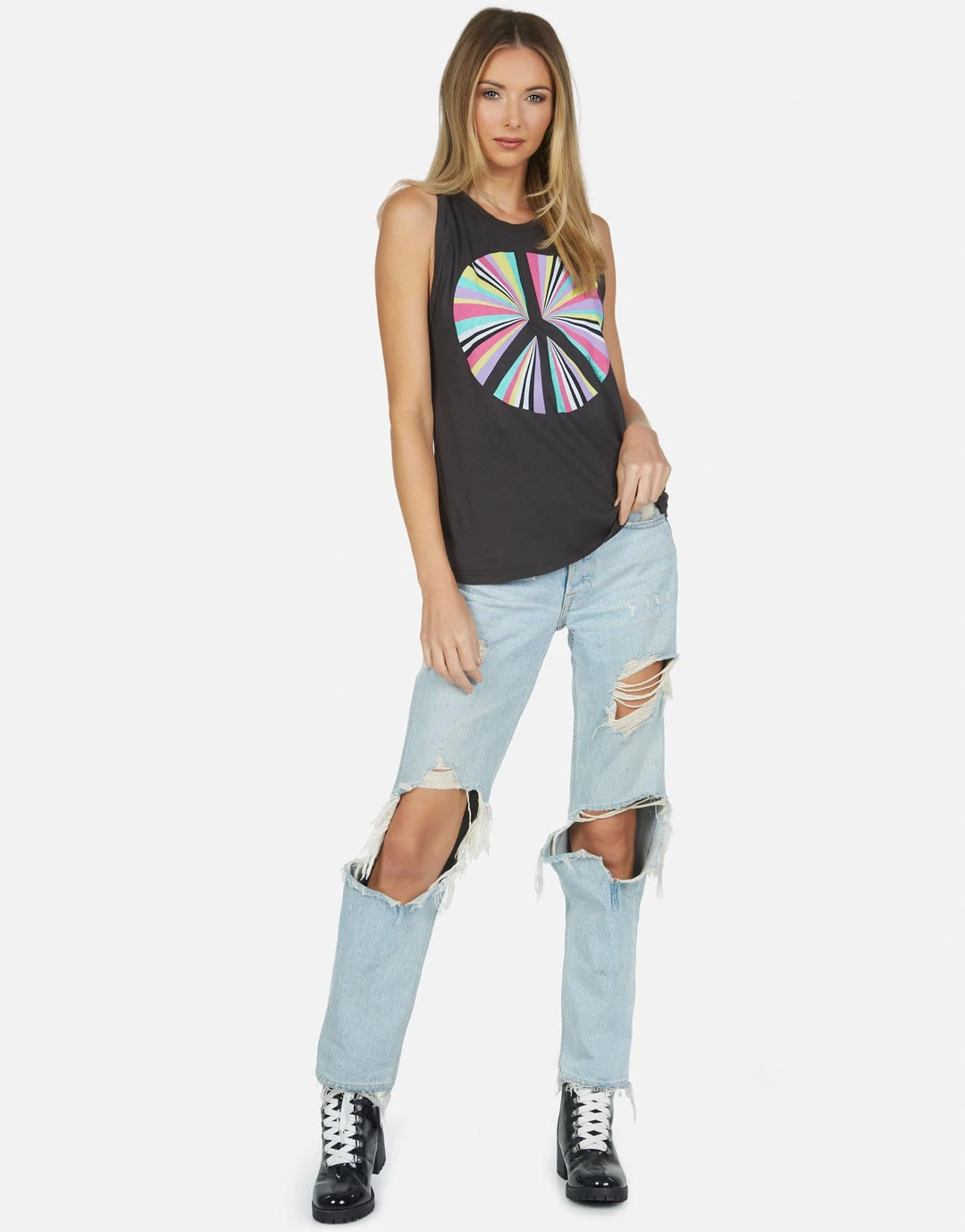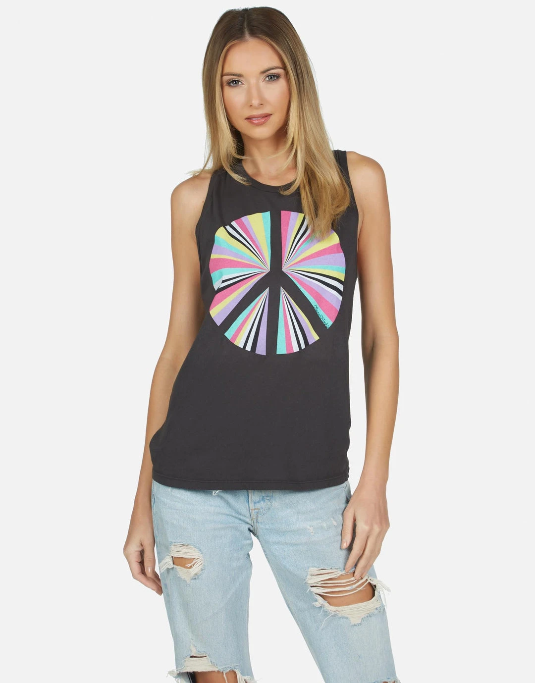 Rainbow Ray Peace Printed on Ultra Soft Lightweight Tank in Heather Grey by Lauren Moshi.