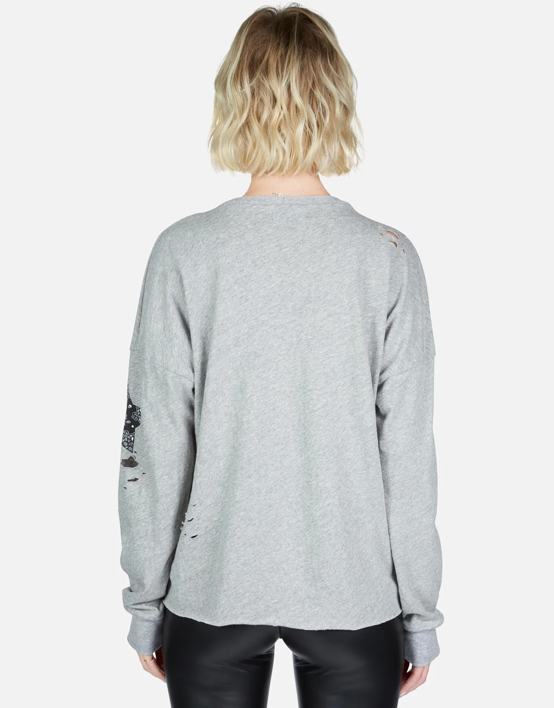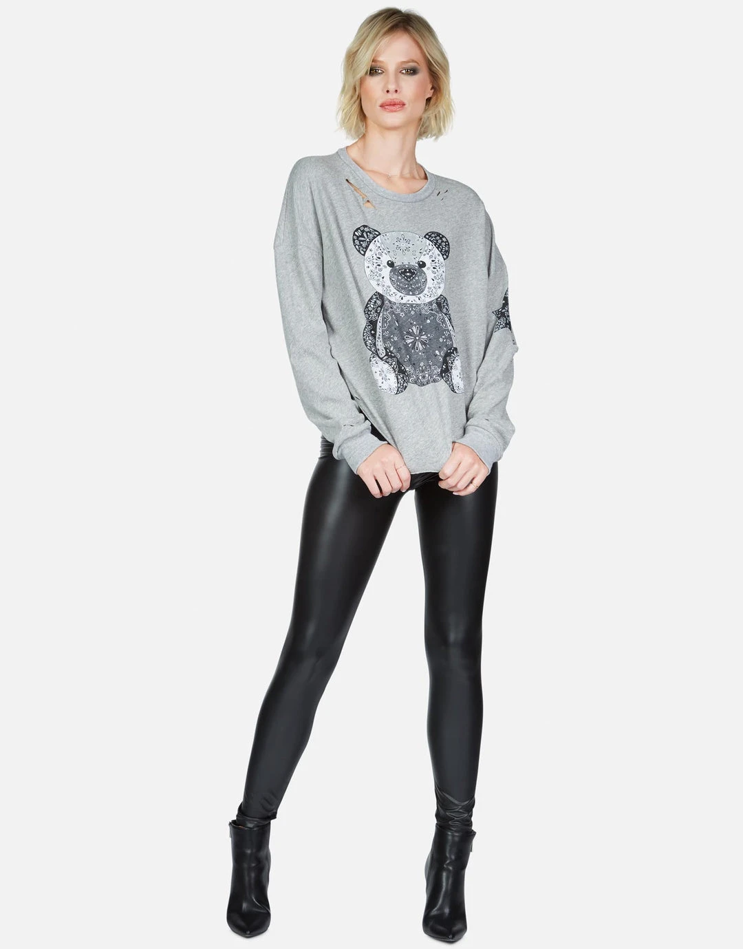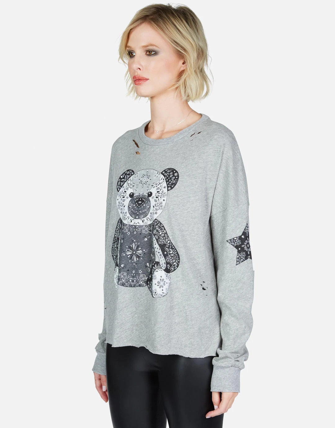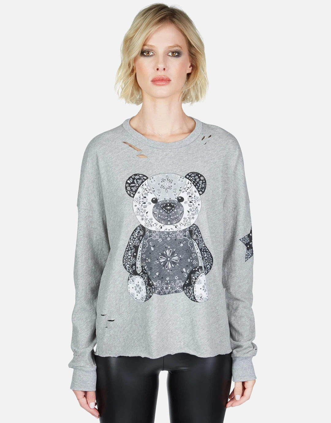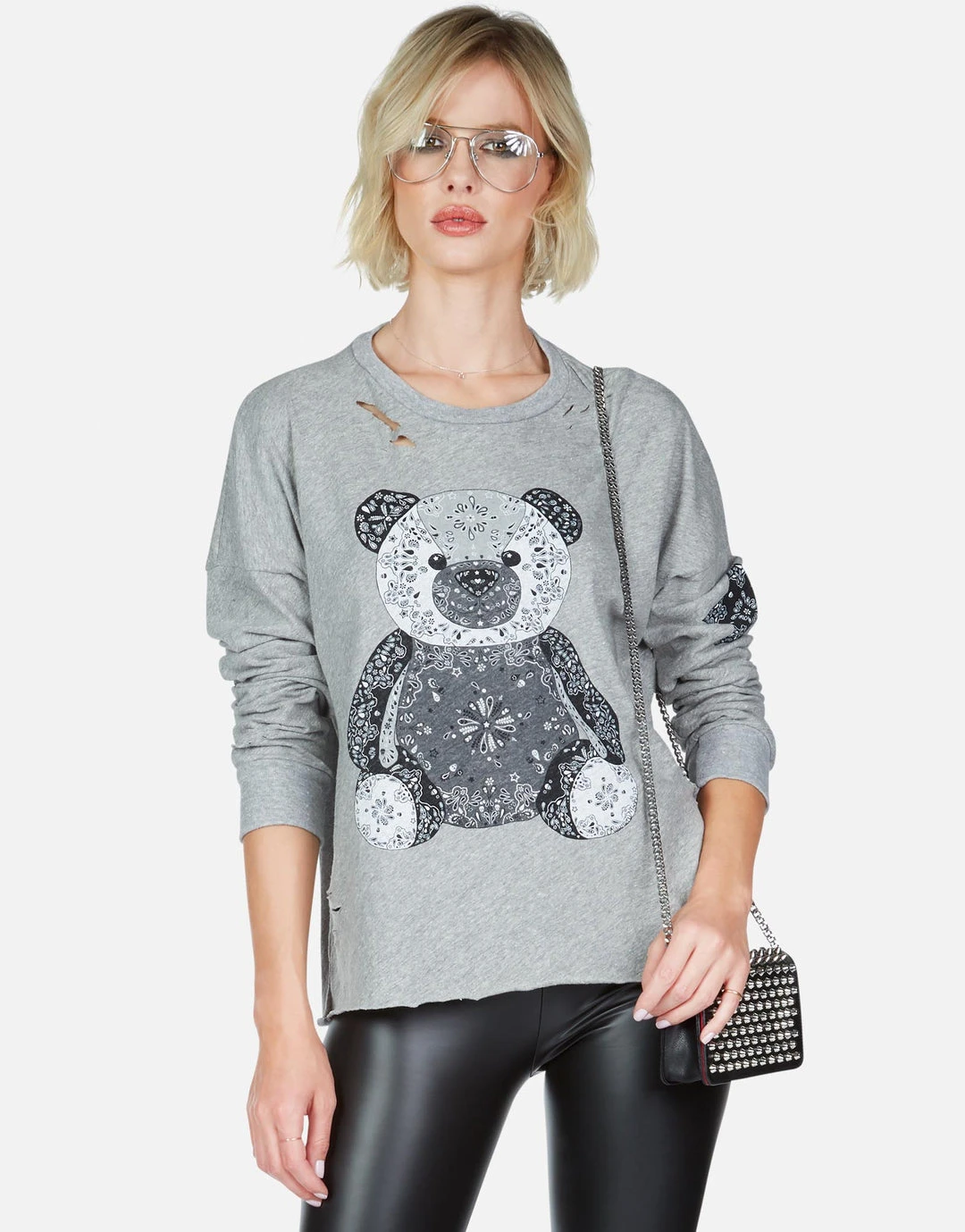 Bandana Bear Printed on Ultra Soft Lightweight Pullover in Heather Grey by Lauren Moshi.