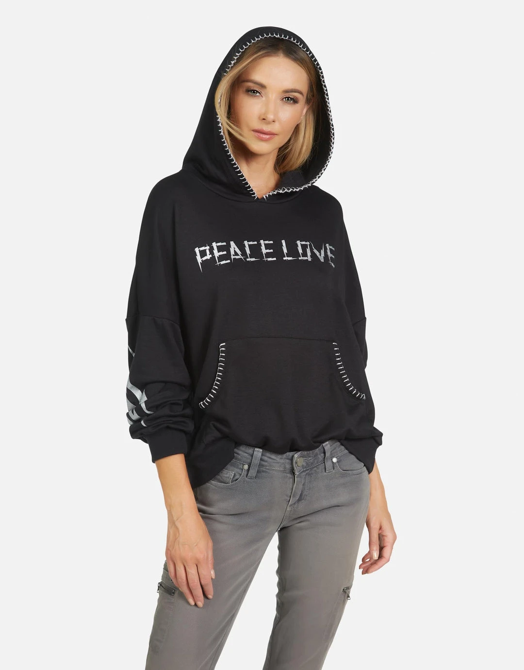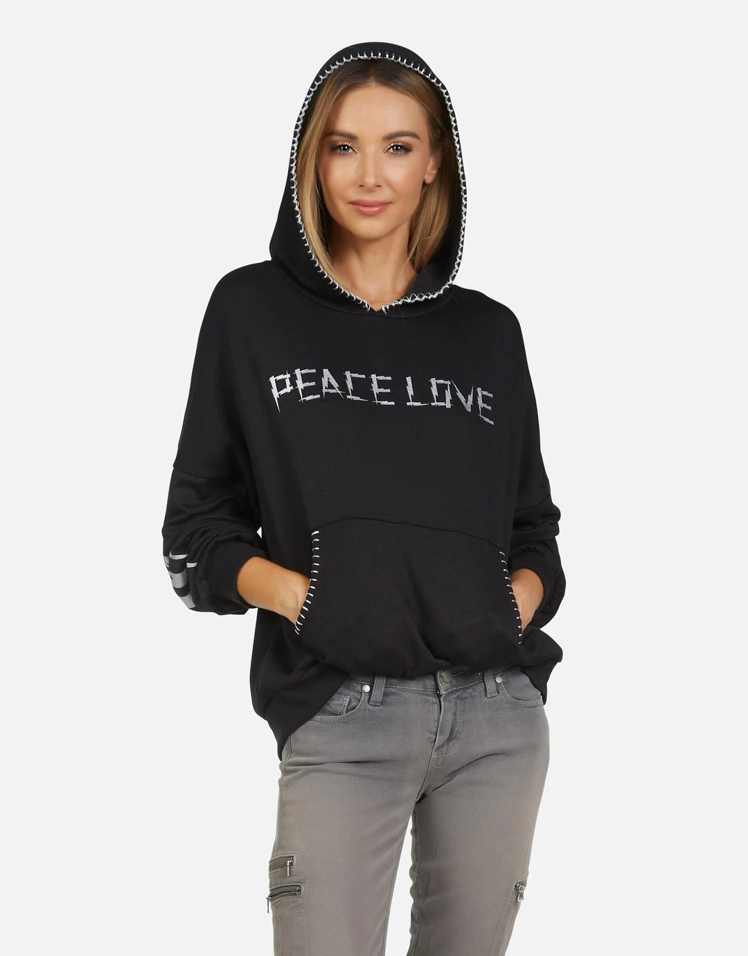 Electric Elephant Printed on Ultra Soft Lightweight Hoodie in Black by Lauren Moshi.
