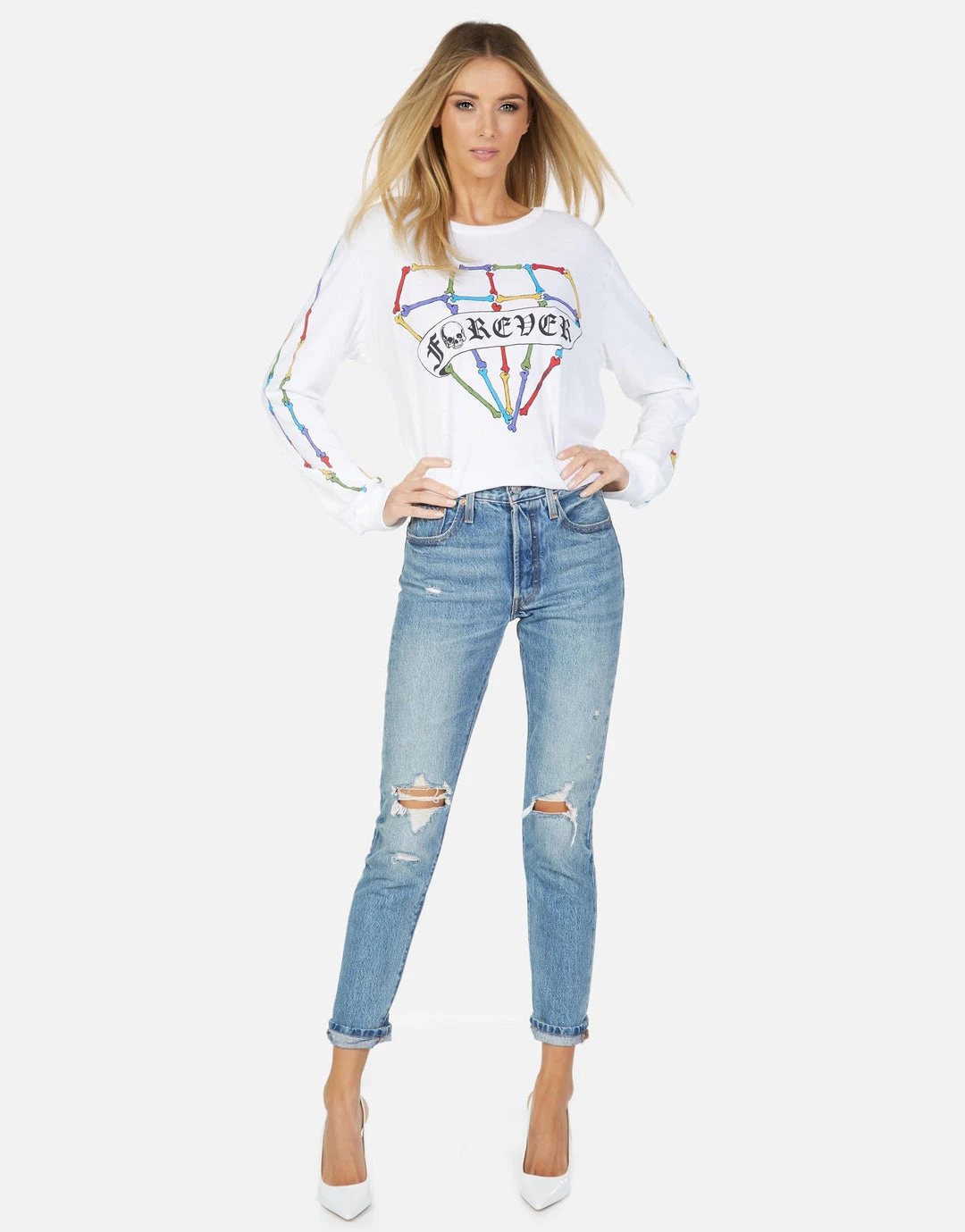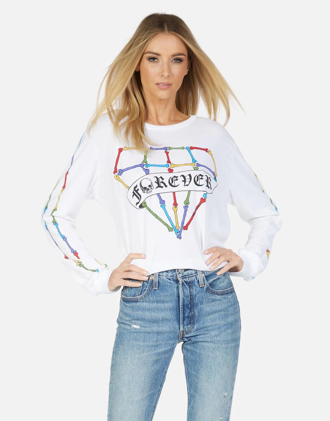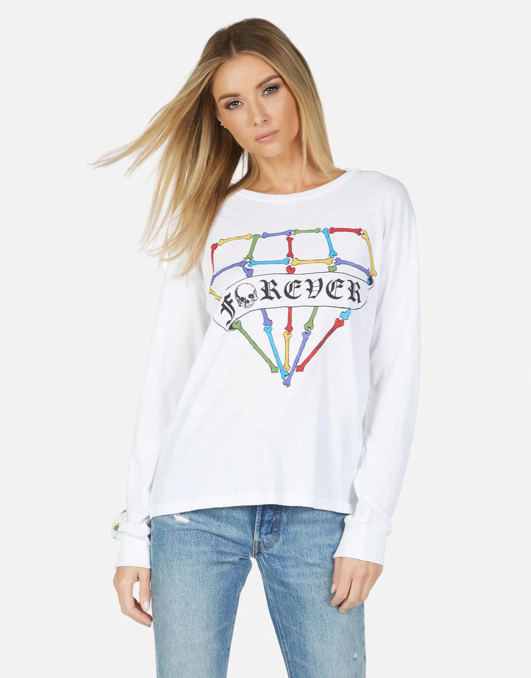 Bone Diamond Printed on Ultra Soft Lightweight Pullover in White by Lauren Moshi.