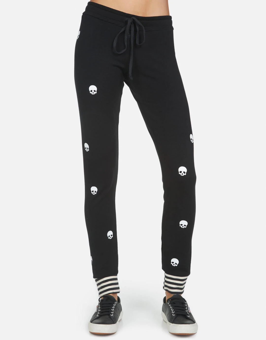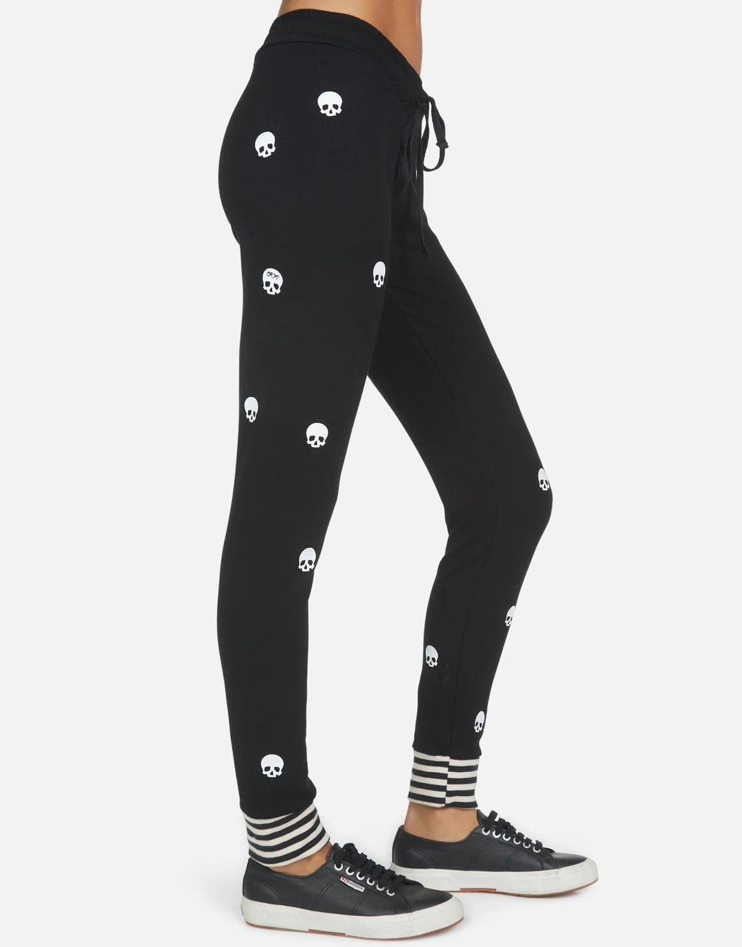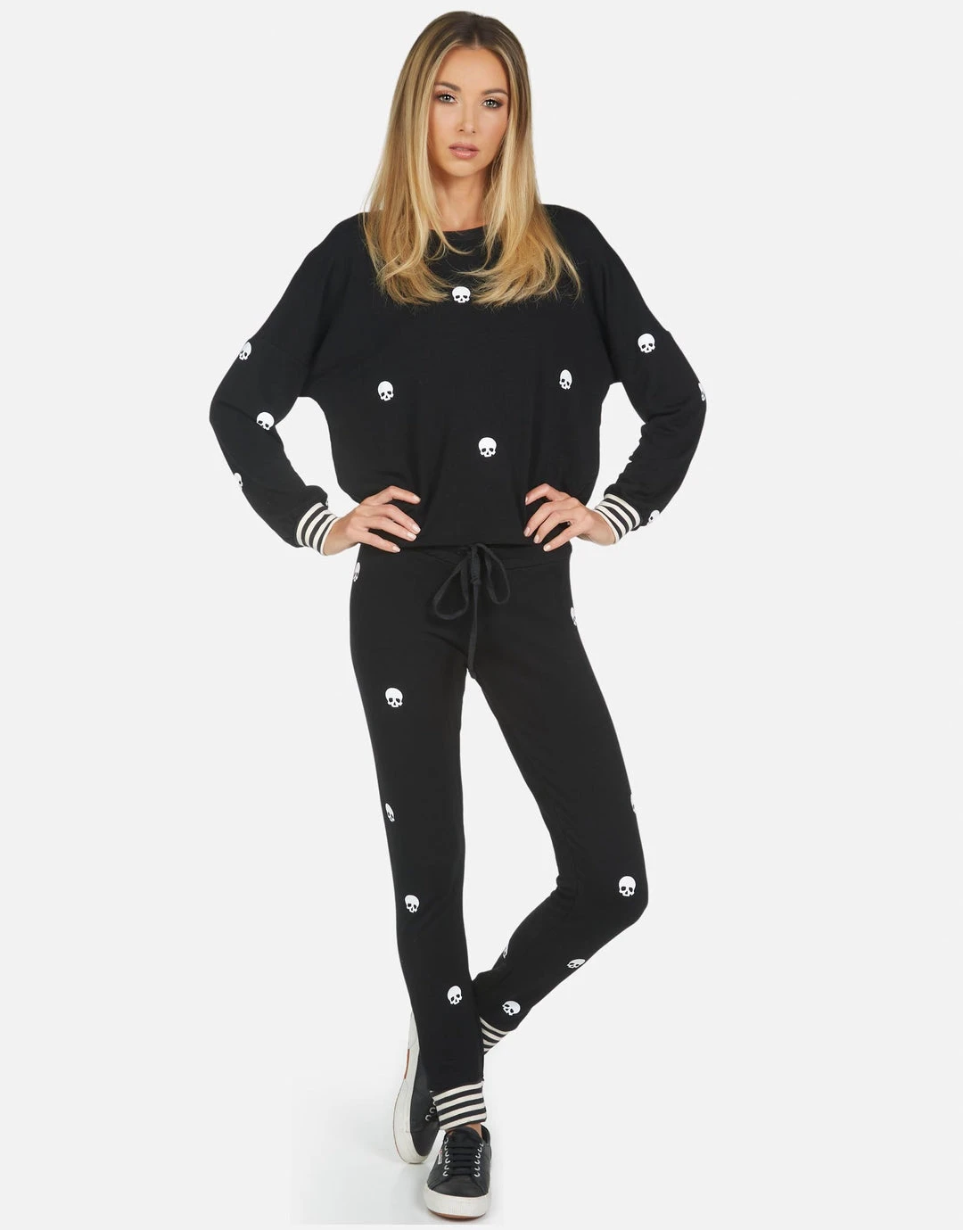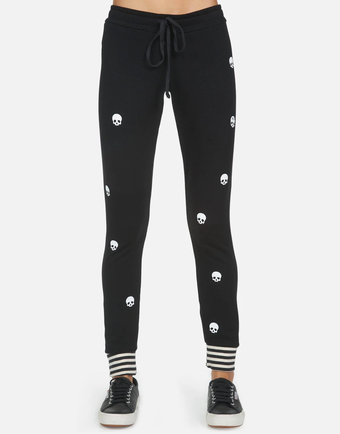 Mini Skulls Printed Ultra Soft Lightweight Sweatpant in Black by Lauren Moshi.