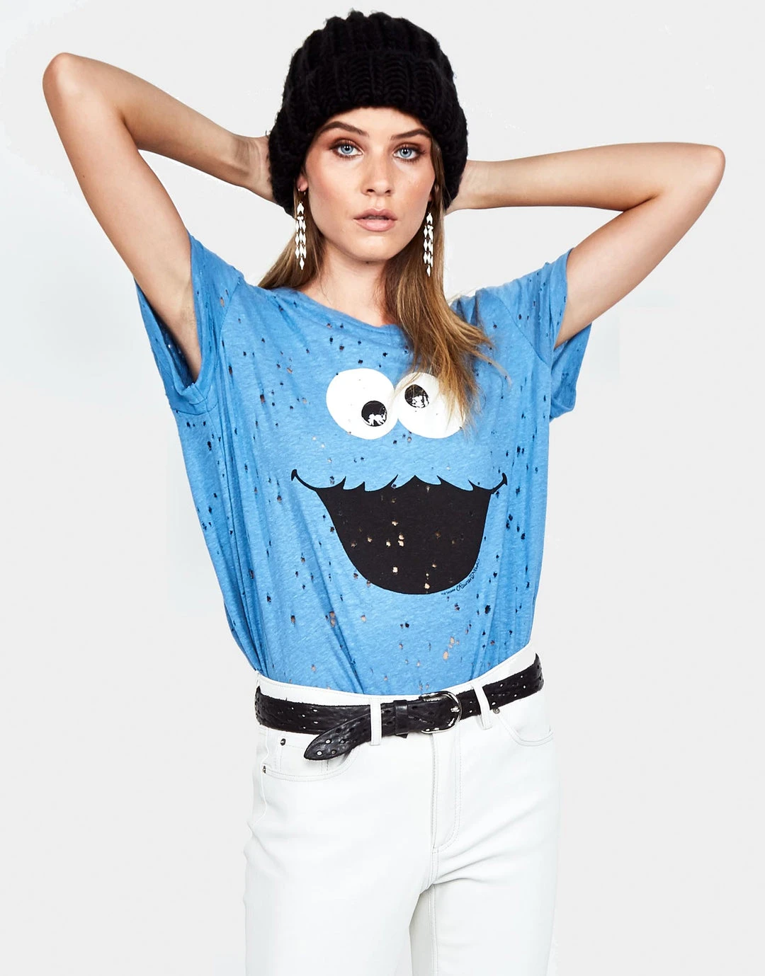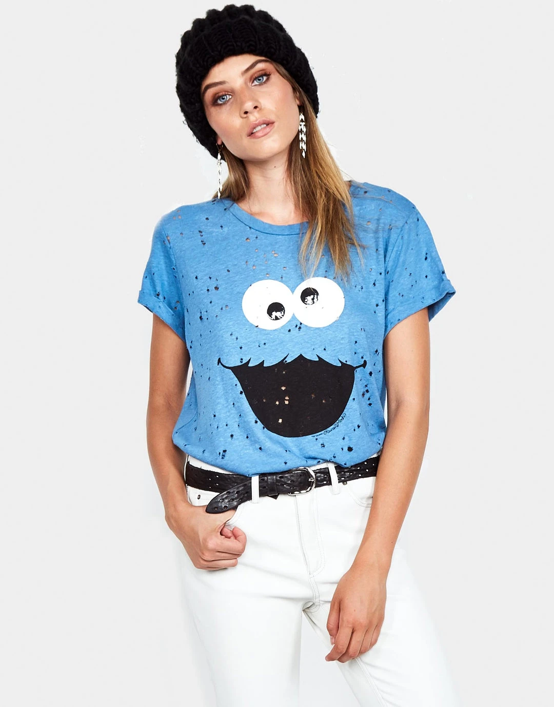 Cookie Monster Printed on Super Soft Lightweight Tee in Riptide by Lauren Moshi.