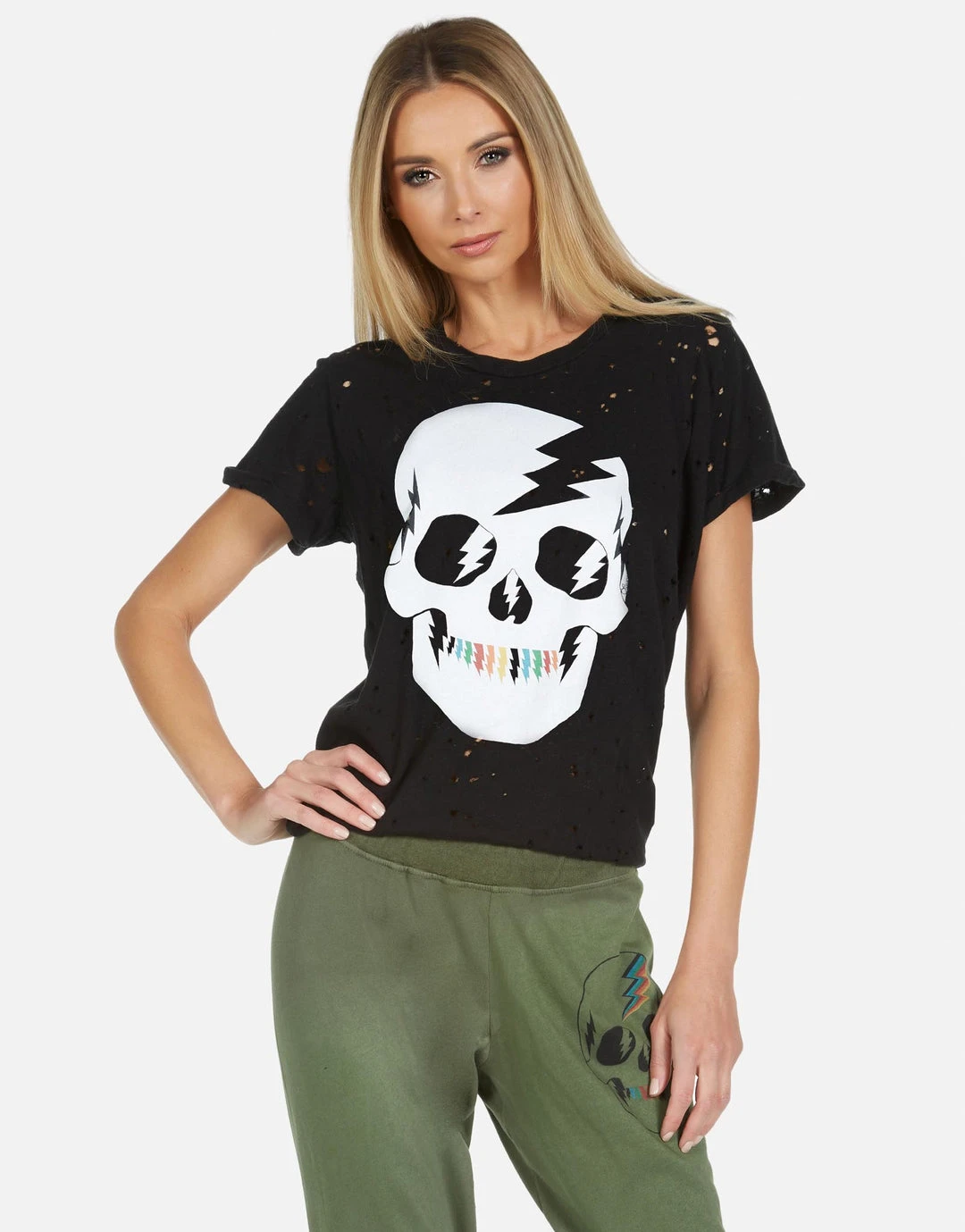 Lightning Skull on Ultra Soft Lightweight Tee in Black by Lauren Moshi.