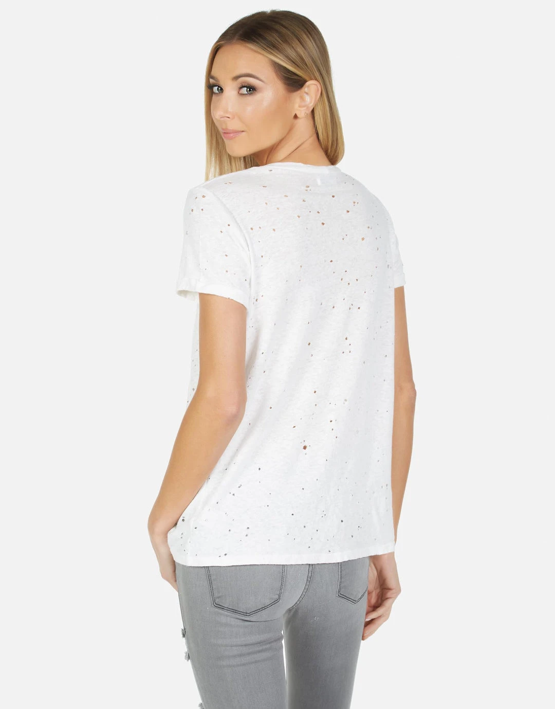 Rainbow Shark Printed on Ultra Soft Lightweight Tee in Milk by Lauren Moshi.