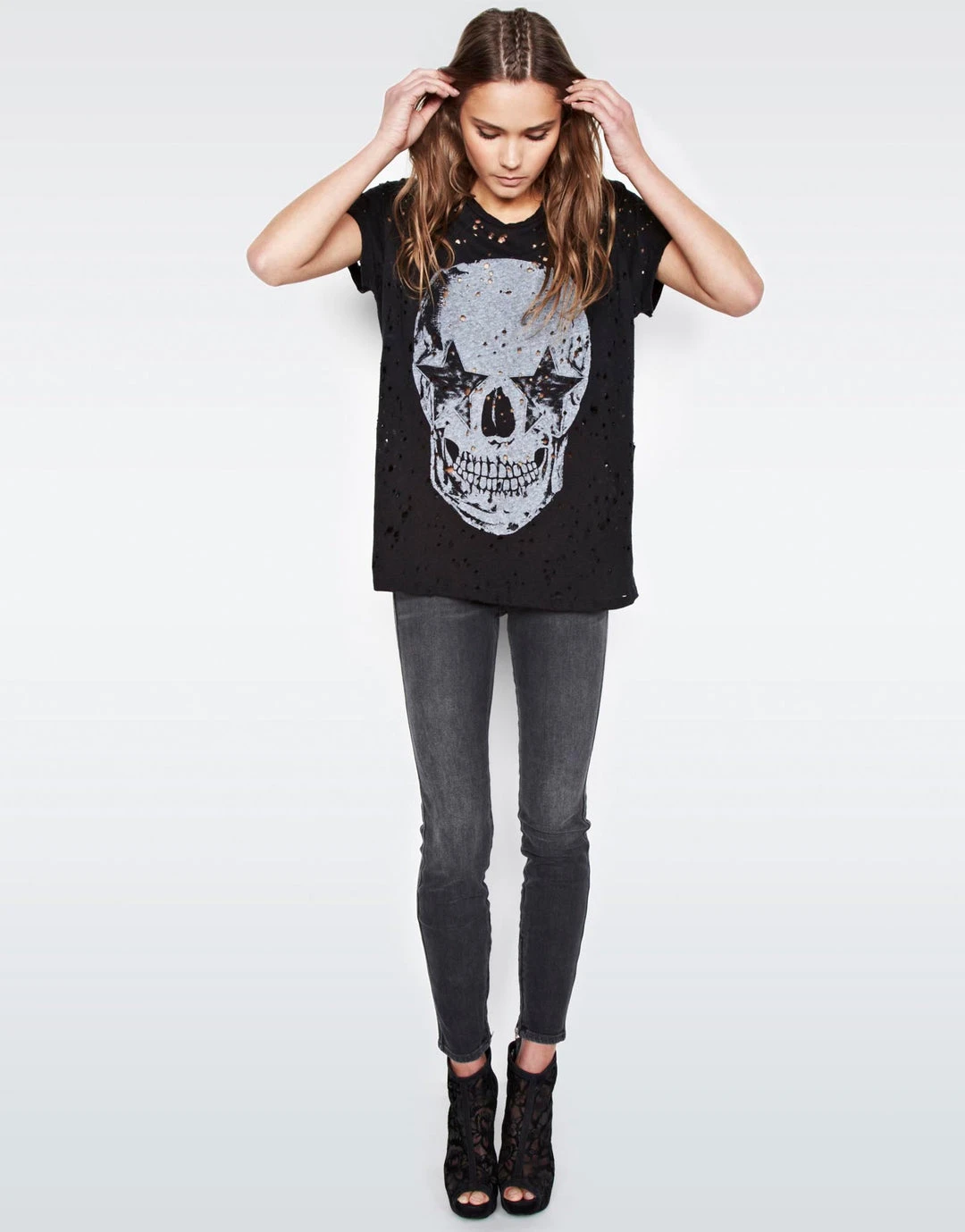 Star Eye Skull Printed on Super Soft Lightweight Tee in Black by Lauren Moshi.