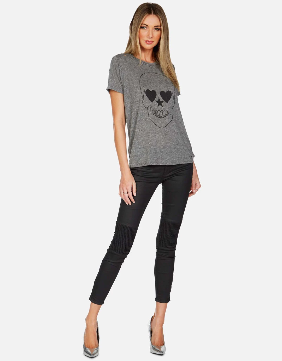 Peace Love Skull Printed on Ultra Soft Lightweight Tee in Heather Grey by Lauren Moshi.
