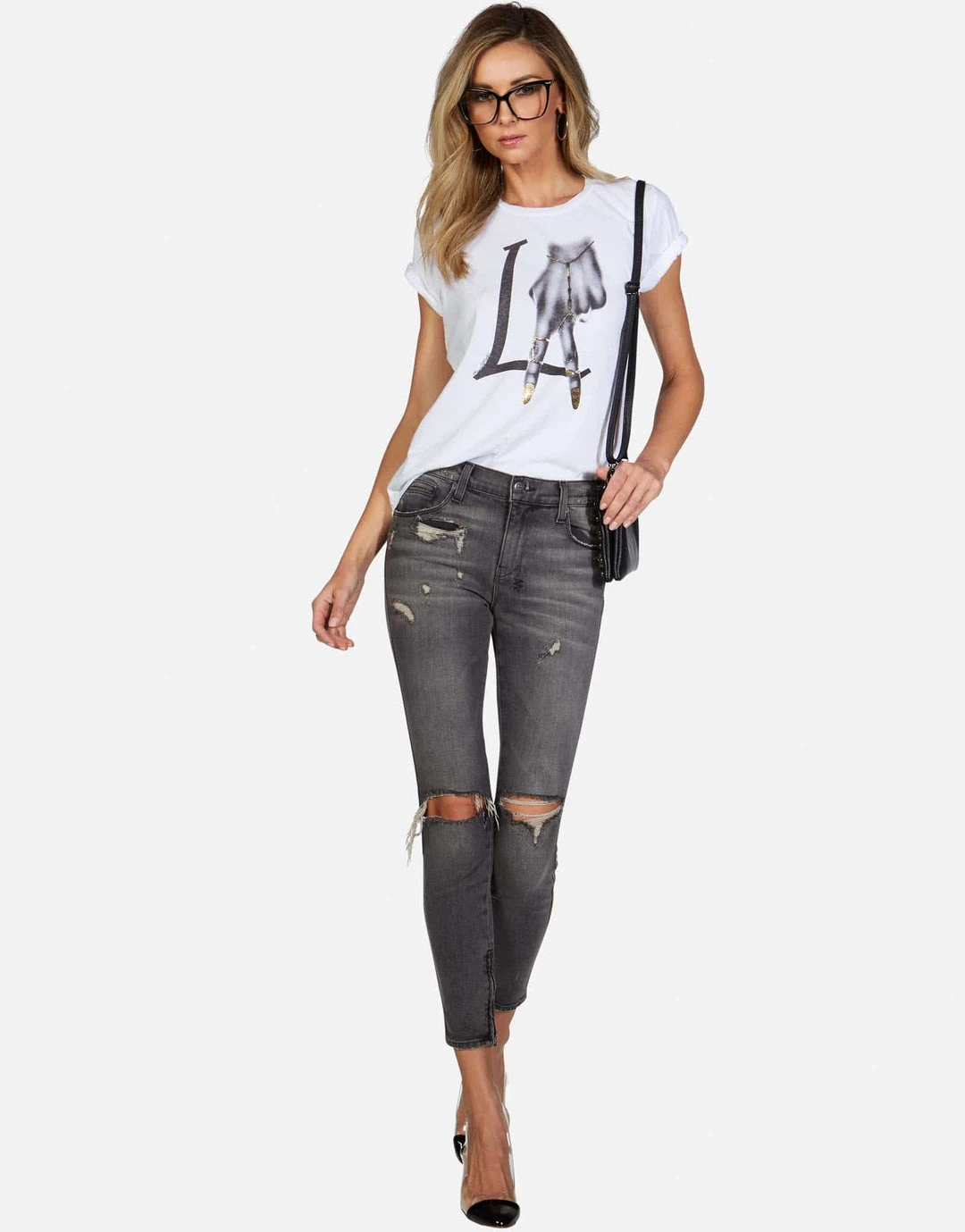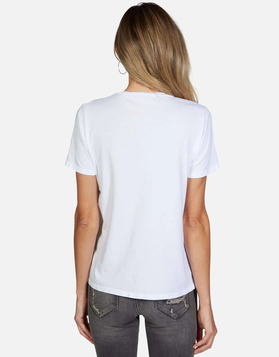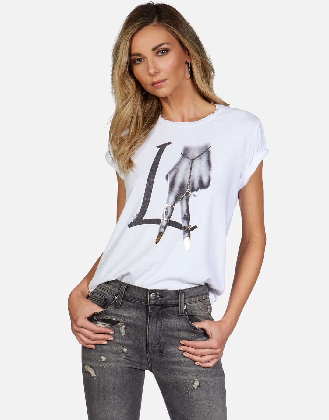 LA Peace Finger Printed on Ultra Soft Lightweight Tee in White by Lauren Moshi.