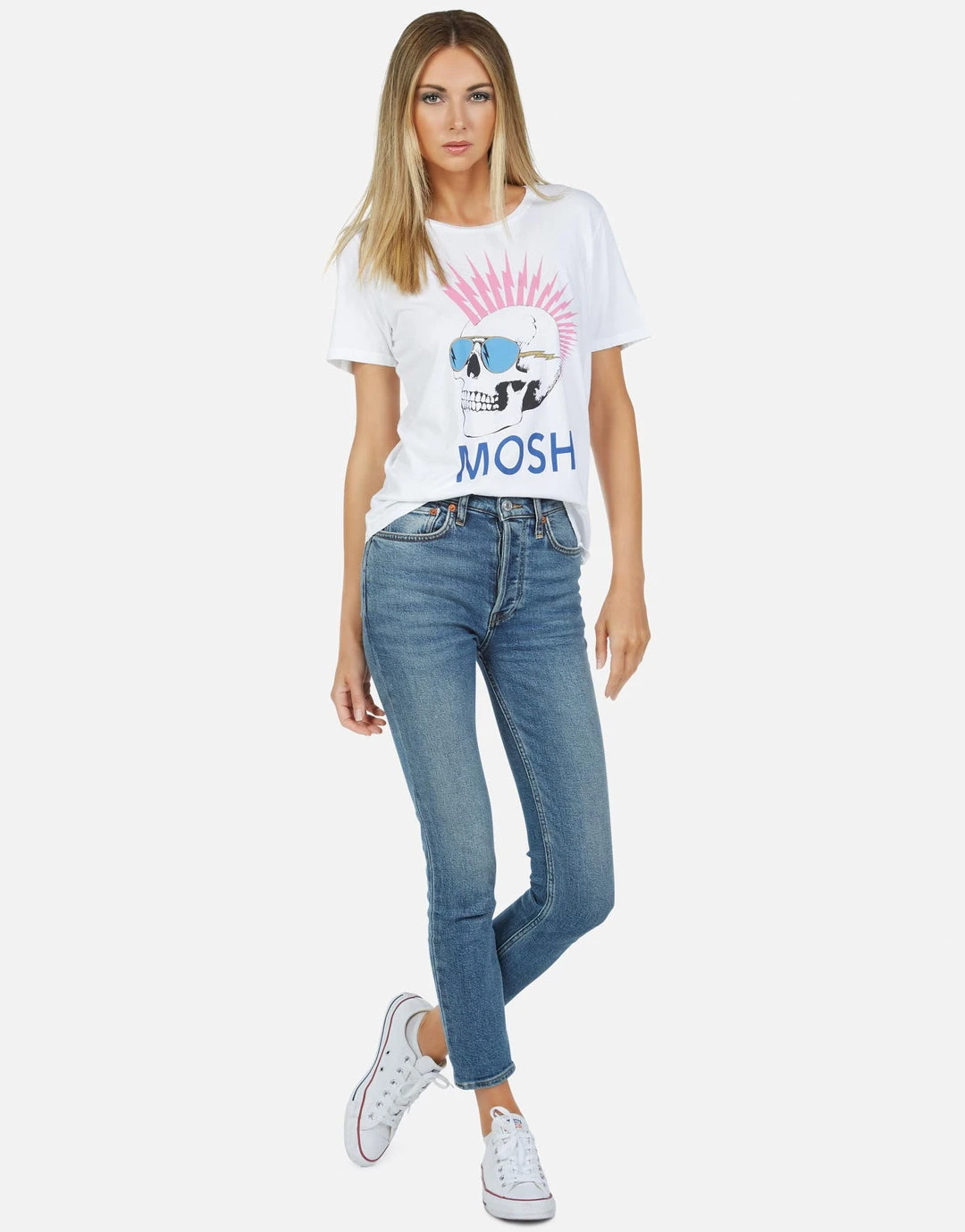 Moshi Lightning Skull Printed on Ultra Soft Lightweight Tee in White by Lauren Moshi.