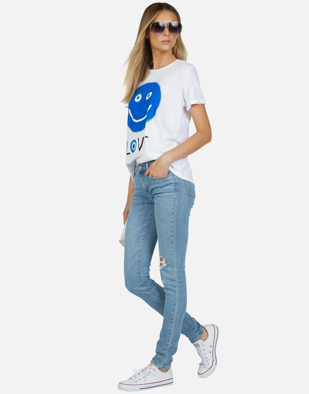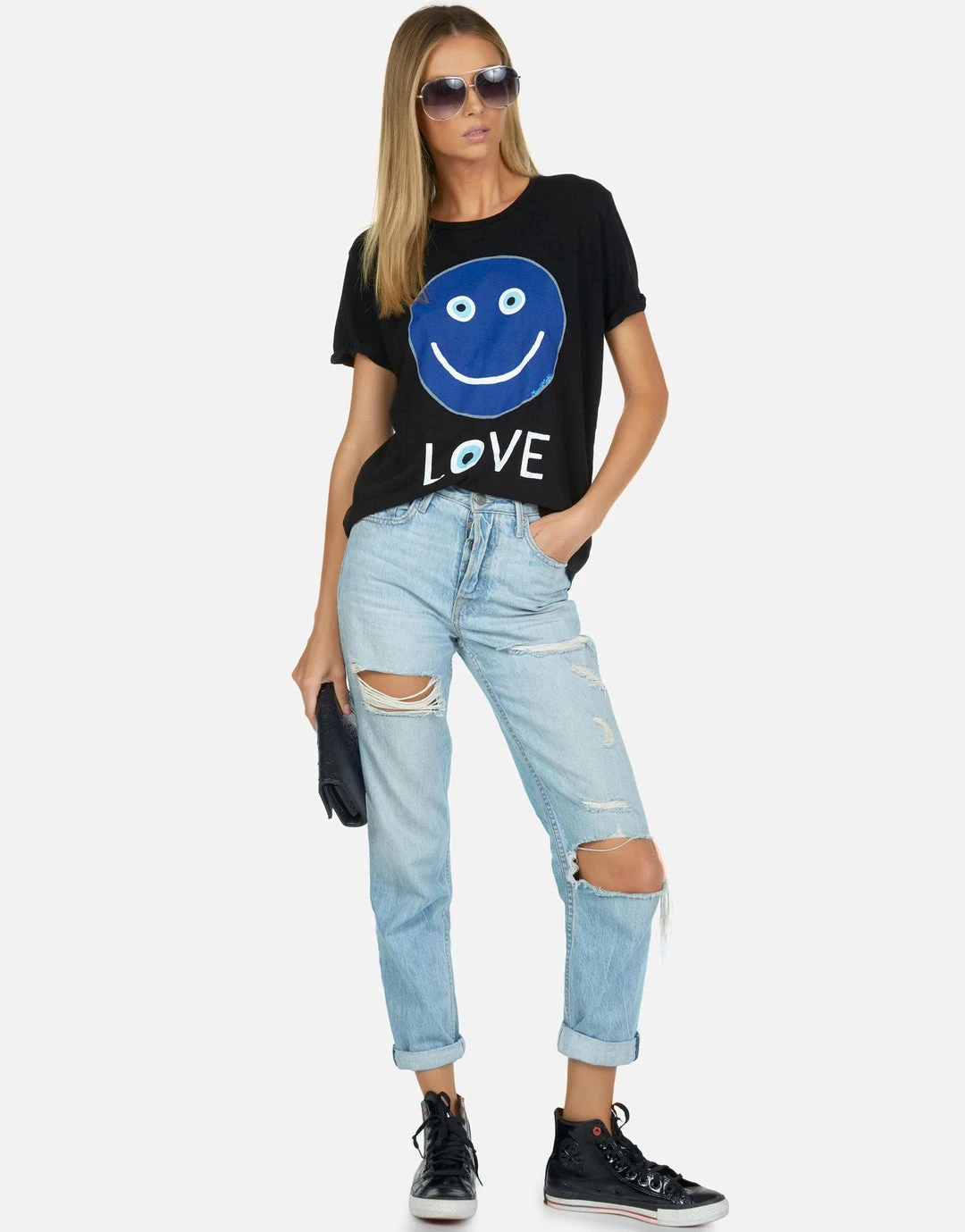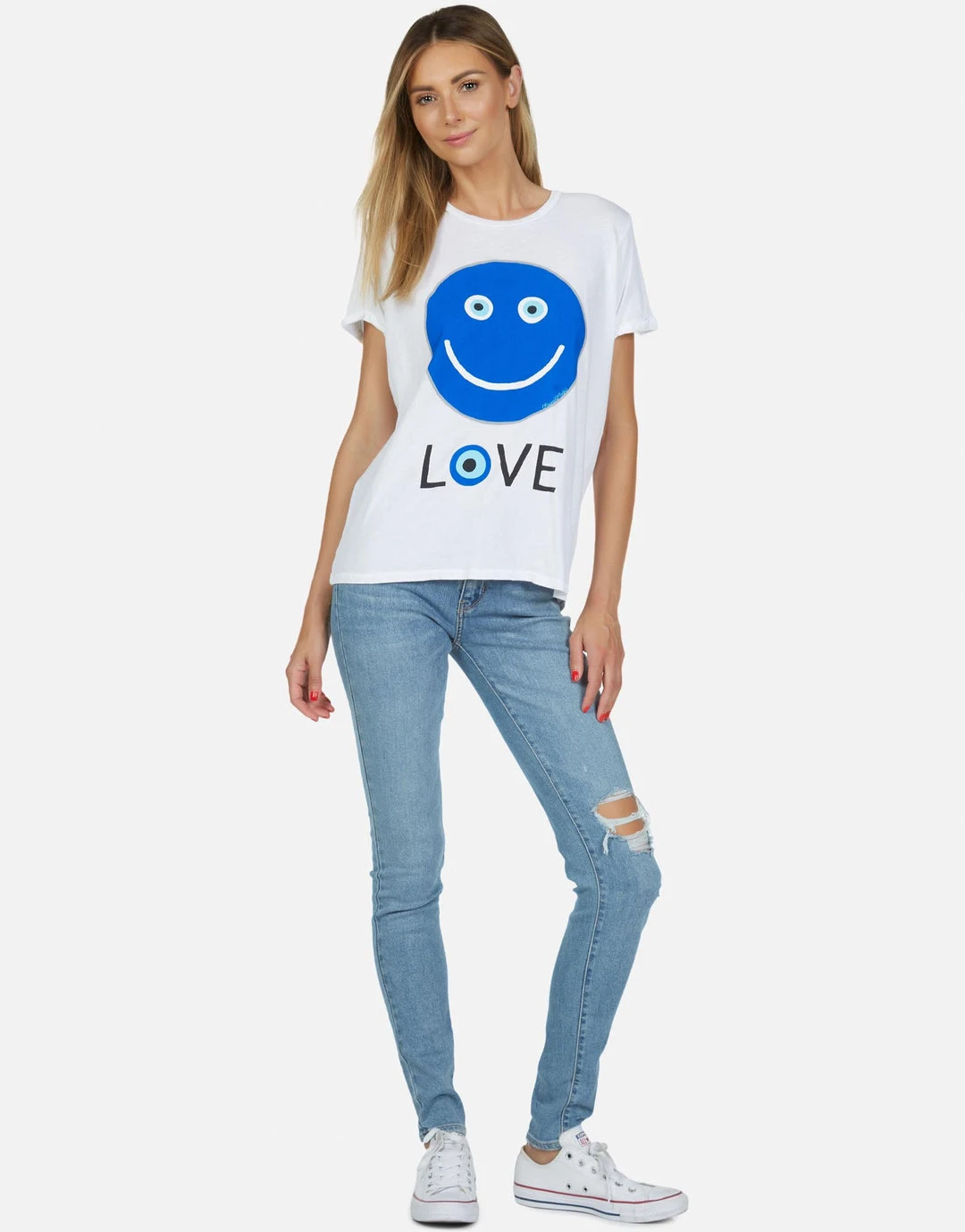 Peace Love Printed on Ultra Soft Lightweight Vintage Tee by Lauren Moshi.