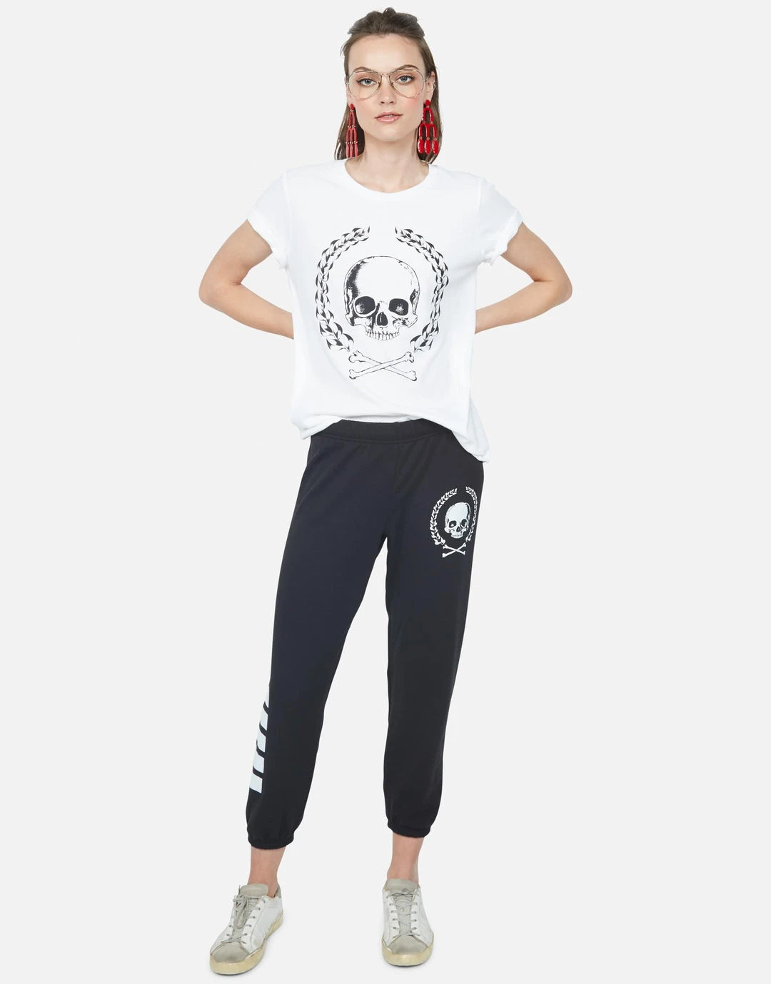 Skull Crest Printed on Super Soft Lightweight V-Back Tee in White by Lauren Moshi.